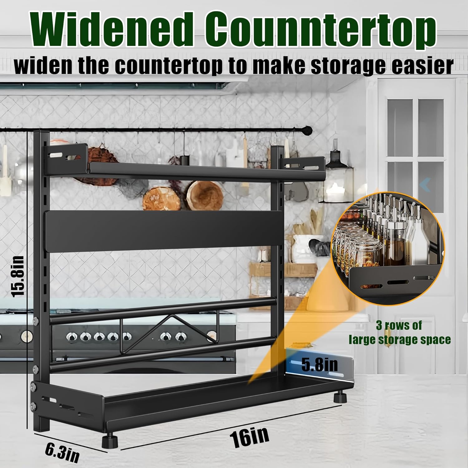 • 🍆【Stable and Durable】Made of carbon steel, this spice rack organizer for cabinet has excellent load-bearing capacity and durability. It can bear a maximum weight of 80 lbs, single layer can bear a maximum of 33LB. Carbon steel has good rust resistance and can maintain a long service life