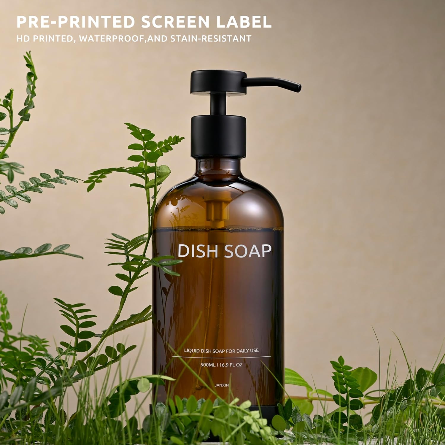 Glass Soap Dispenser Set by Janxin,Bathroom Soap Dispenser Set with Ceramic Tray,Luxury Bathroom Accessories,Modern Kitchen Decor (Amber(Dish Soap))
