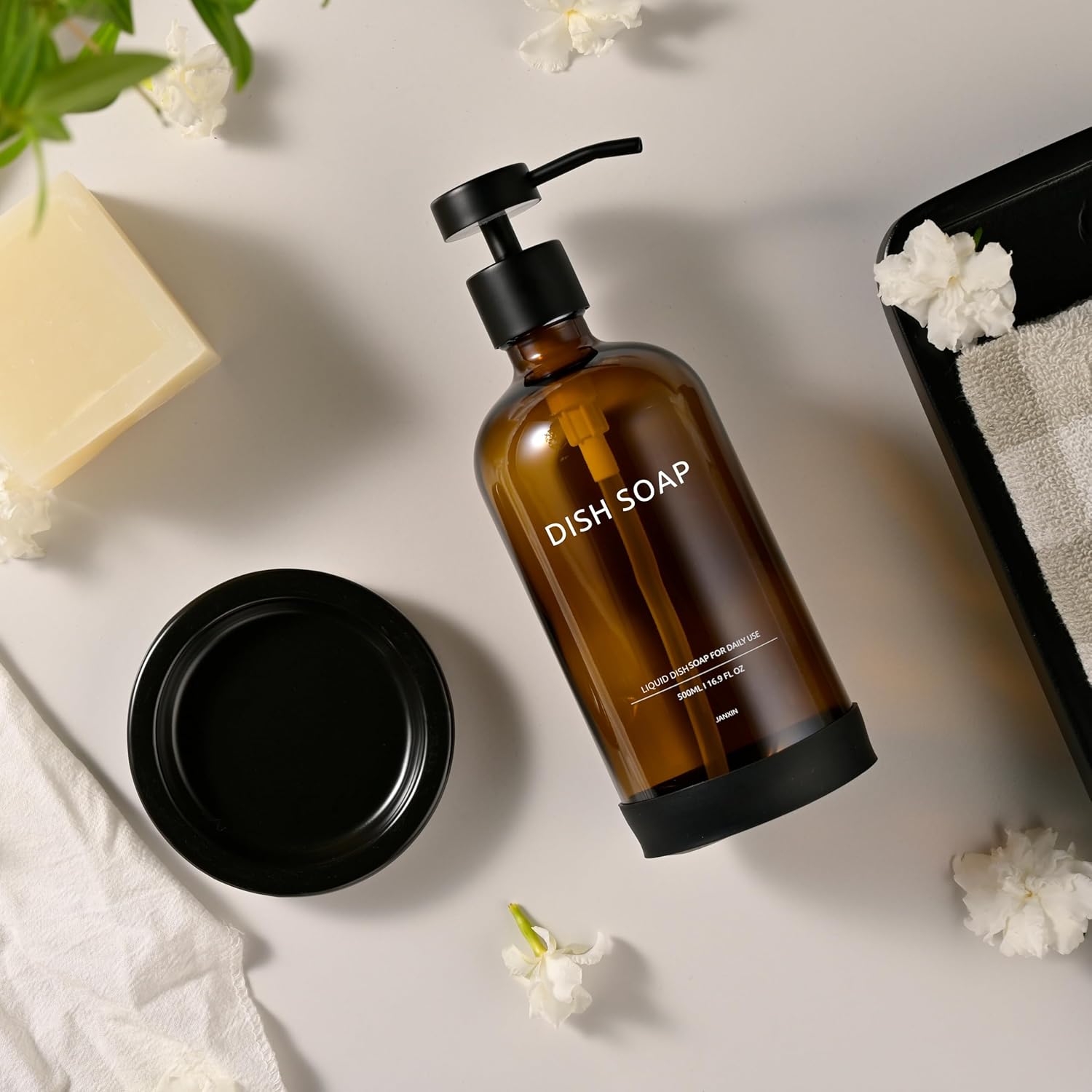 • LUXURY SOAP DISPENSER SET: Transform your kitchen or bathroom decor instantly with our luxurious kitchen soap dispenser set, This set includes one 16.9 Oz/500 premium glass bottles with 2CC stainless steel pumps, one ceramic tray . Great for upgrading your kitchen and bathroom countertops with this stylish soap dispenser set
