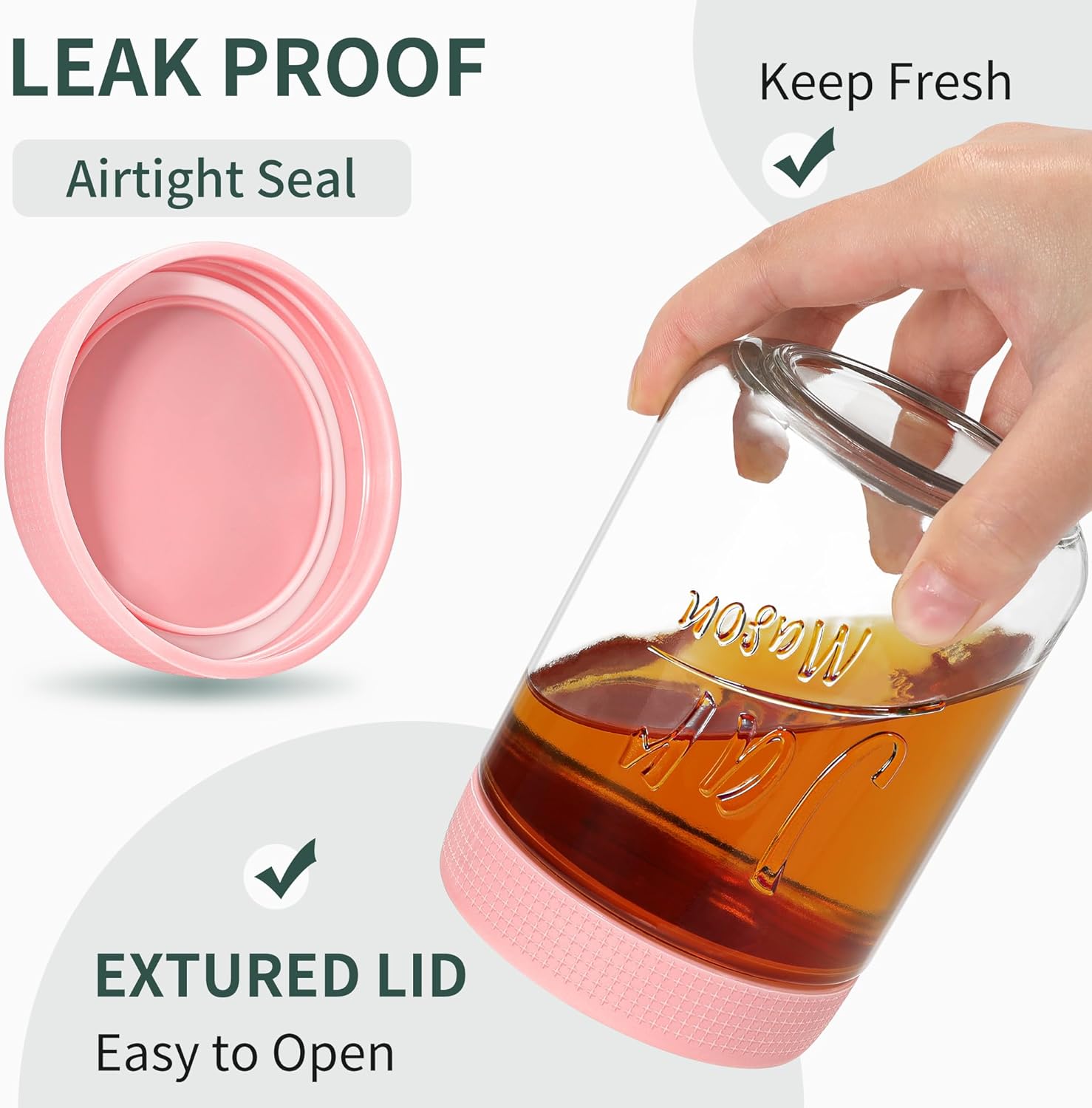 • Stackable Jars with Easy-Grip Lids: The recessed lids make these jars for overnight oats stackable, saving space in the fridge, pantry, or cabinet. Textured lids ensure a secure grip, even with cold or wet hands—keeping your kitchen organized.