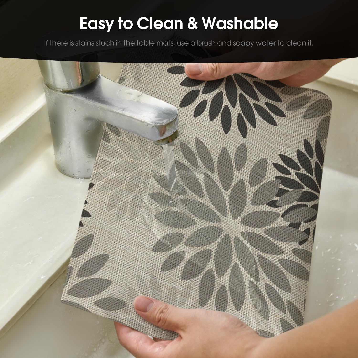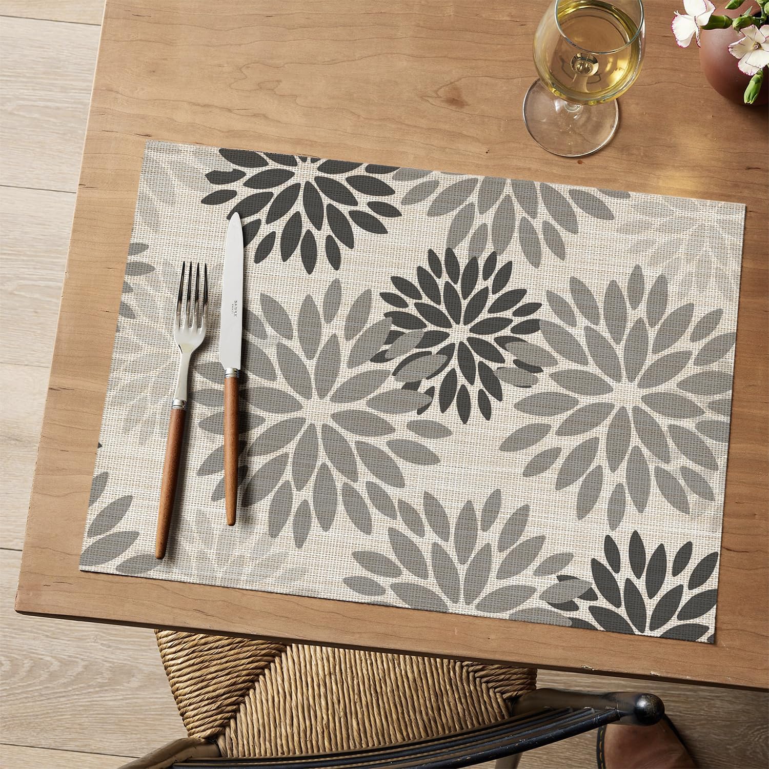Artoid Mode Floral Vinyl Placemats Set of 6, Heat Resistant Washable Non-Slip Plistic PVC Place Mats for Halloween Party Kitchen Dining Decor, Gray