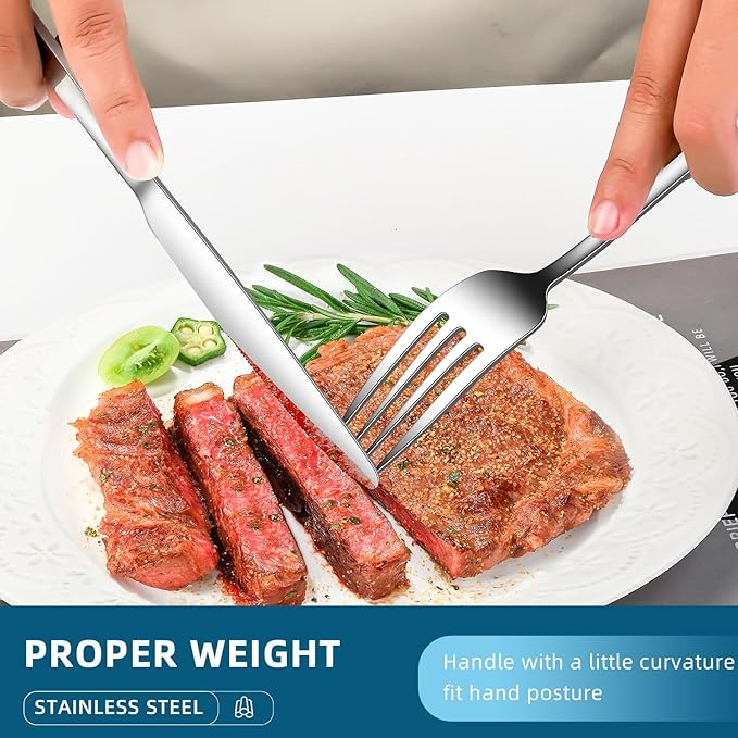 • MULTIPLE USES: This kitchen silverware sets seamlessly transitions from everyday dining to dinner parties.The clean silhouettes maintain crisp lines even under high-volume restaurant use, while the muted luster projects understated sophistication, particularly suitable as a present