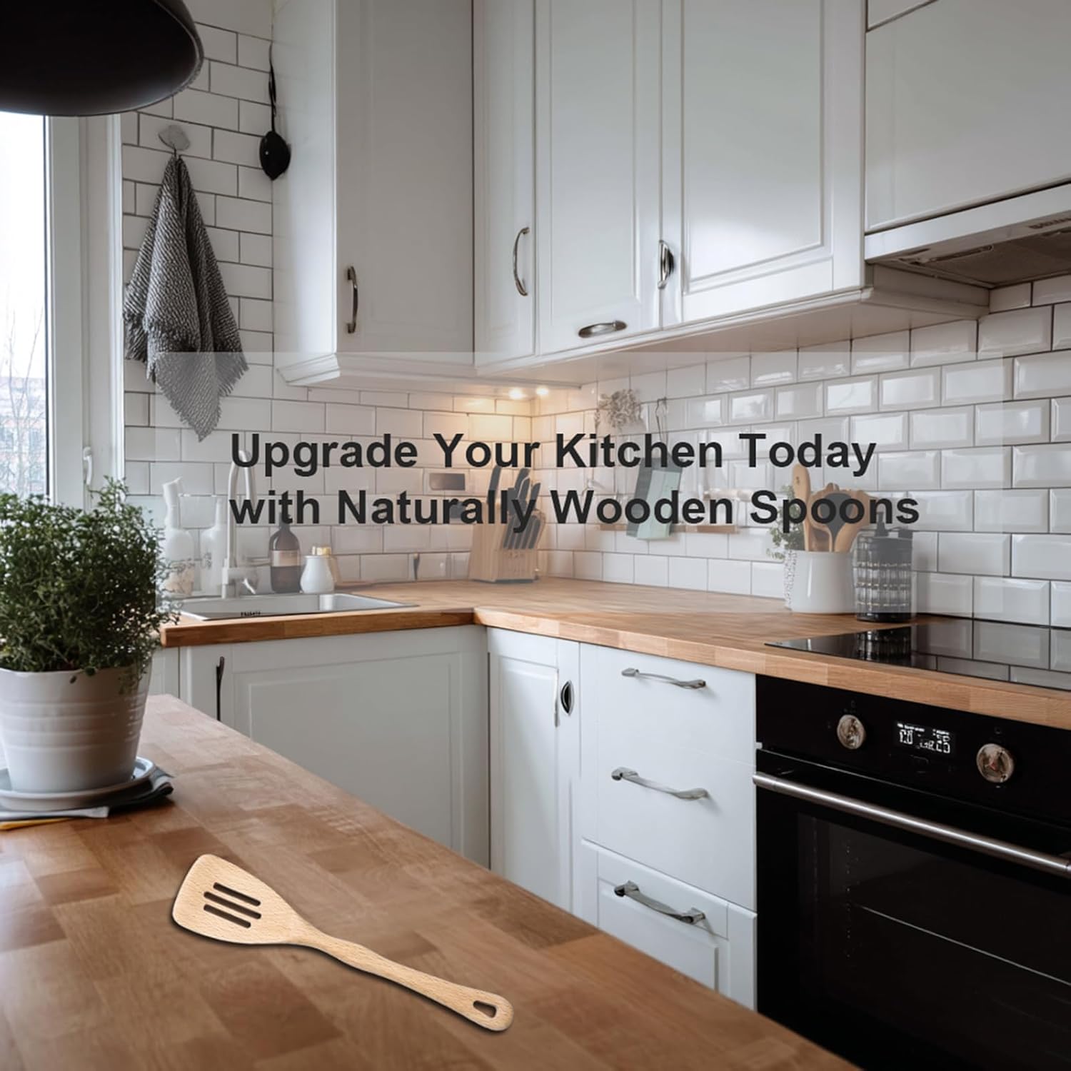 Wooden Spoon for Cooking 11.8 Inch Kitchen Slotted Spatula for Stirring Mixing Serving