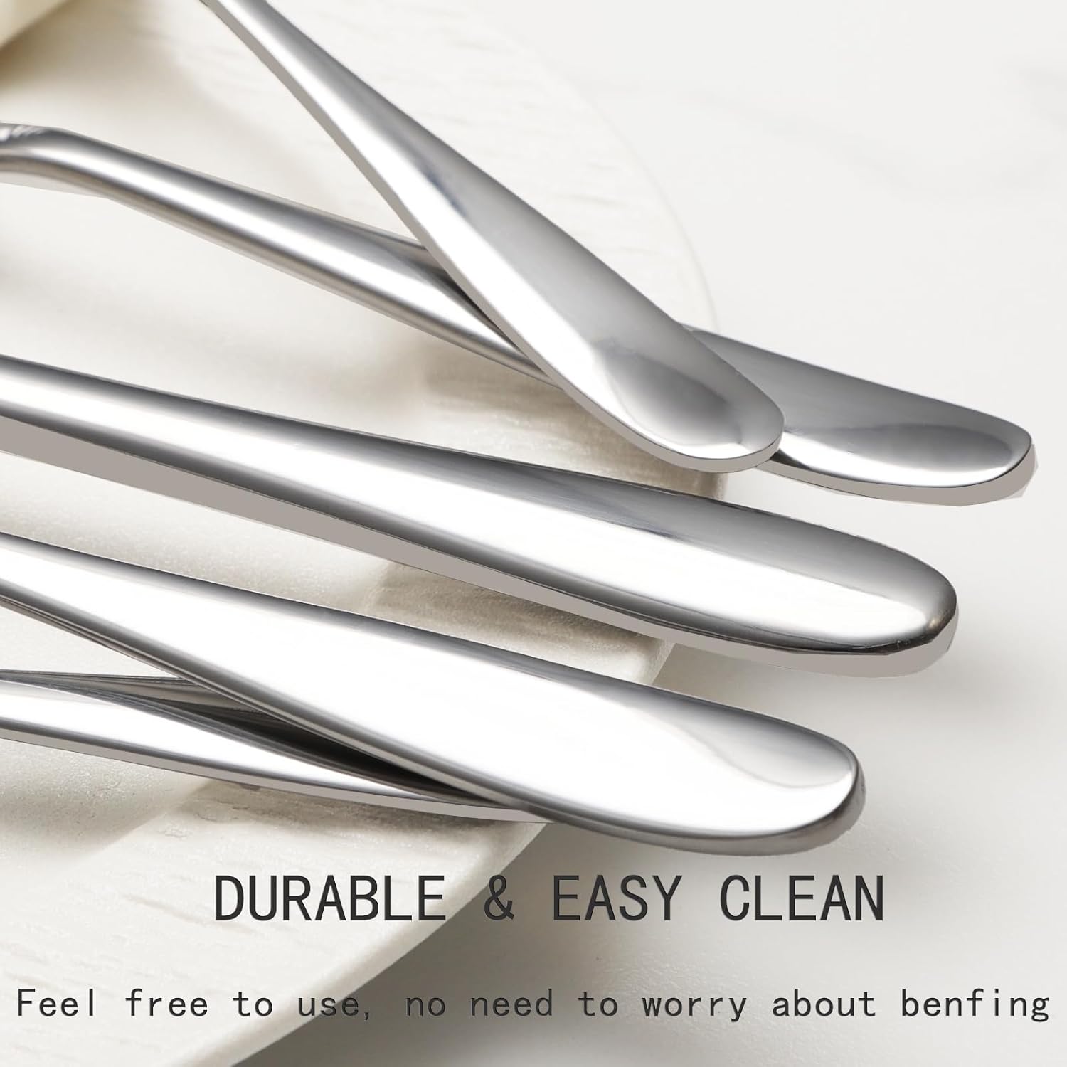 • Elegant Design: This is a very modern art style silverware set, clean lines, highly mirror polished, smooth edges, free of rough spots and edges, unique and elegant appearance would match well with your existing eating utensils, enhance your dining experience.