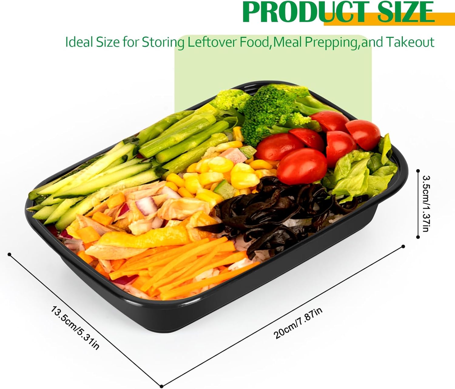 • Perfectly Sized - Our meal prep containers,built for durability,are stackable for easy storage and versatile use.Perfect for meal planning,leftovers,and on-the-go meals,they're also ideal for delis,kiosks,food trucks,catering services,or restaurants offering takeout