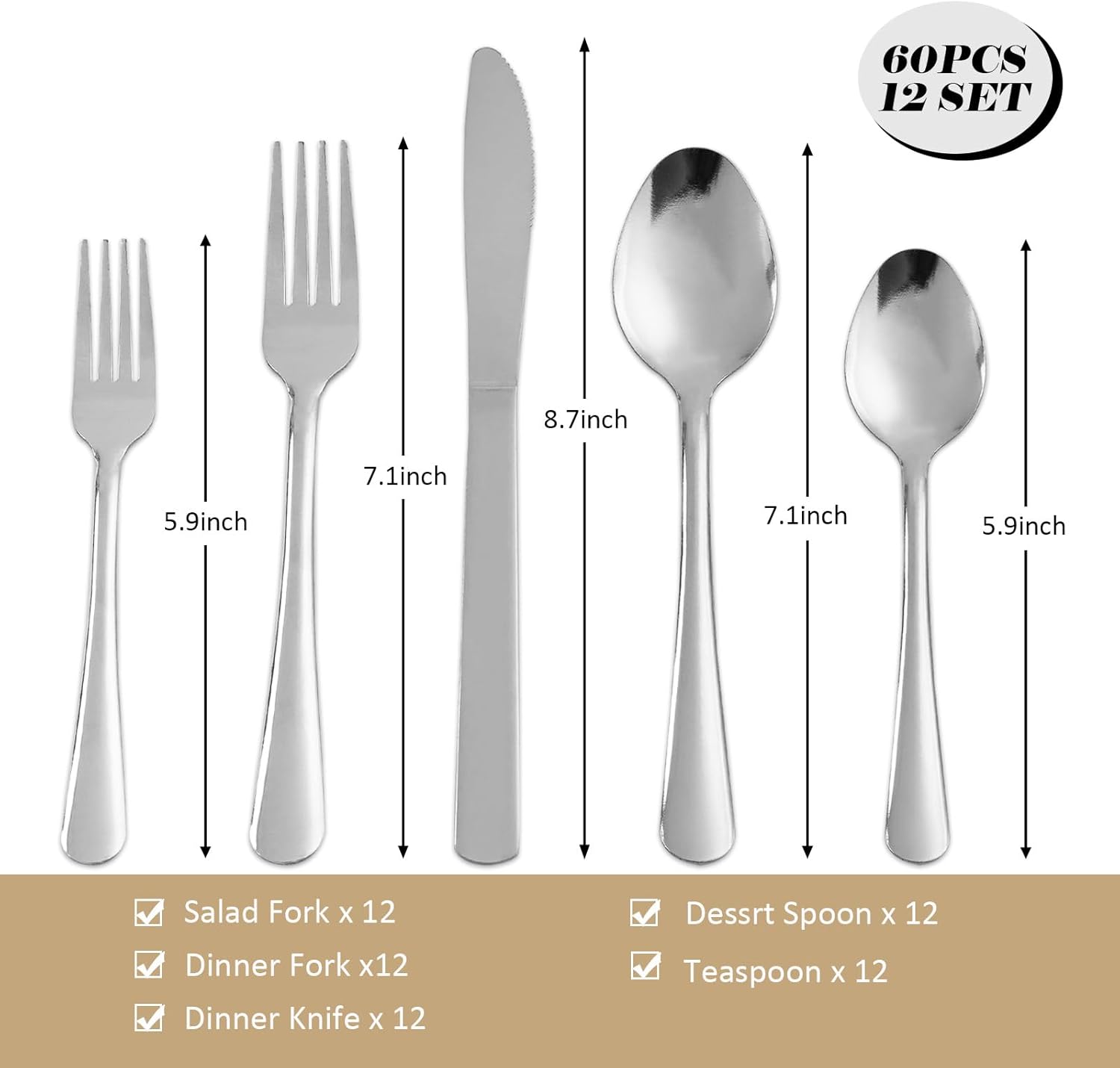 60 PCS Silverware Set - Windsor Stainless Steel Silverware Set for 12 Kitchen Flatware Set Cutlery Set For Home Restaurant Hotel, Kitchen Dishwasher Safe & Mirror Polished Utensils Set