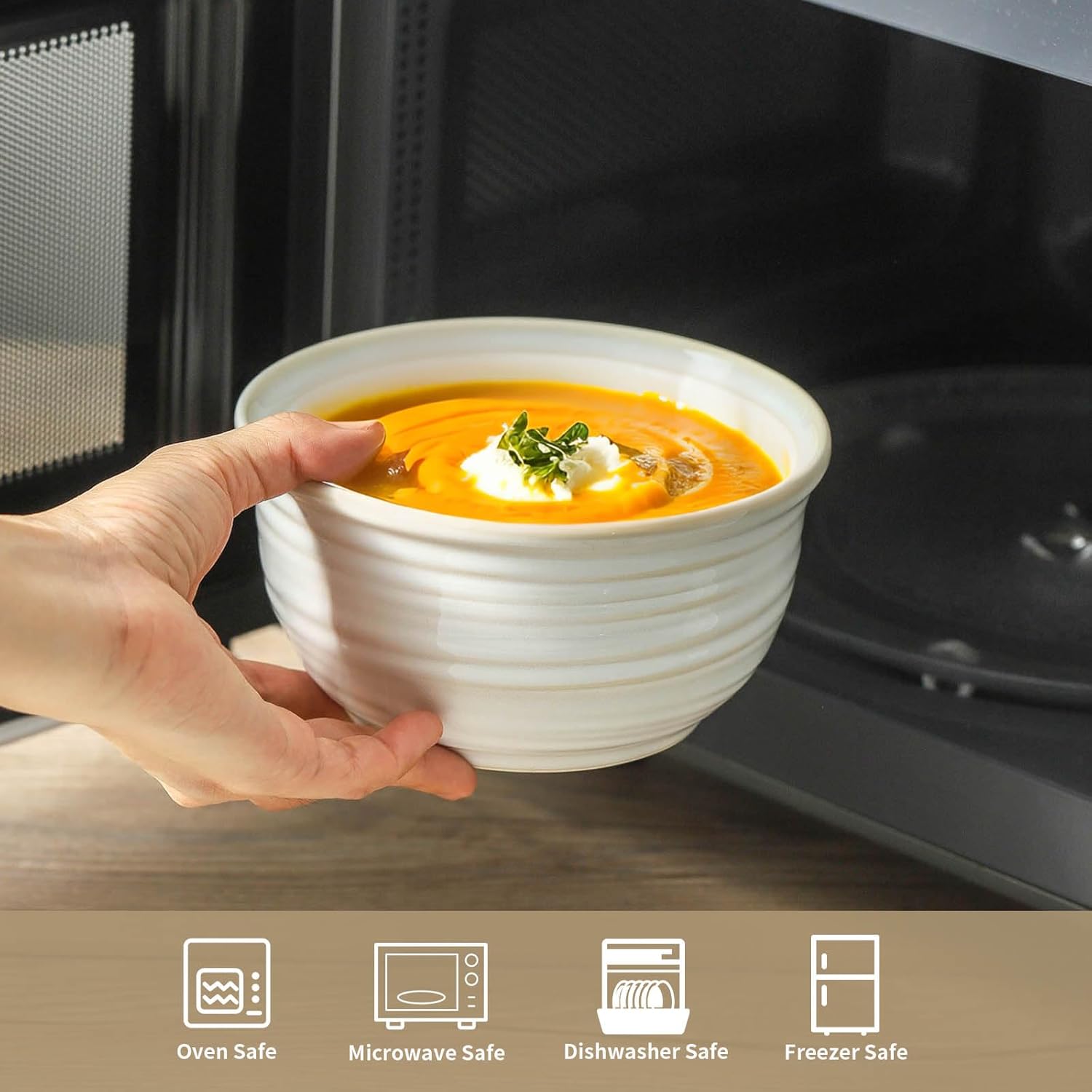 • Artisan White Glaze with Natural Charm: Each bowl in this set features our signature ceramic glaze that subtly reveals earthy clay undertones - a beautiful kiln-fired effect adding organic warmth to your dining experience, while being completely food-safe and non-toxic