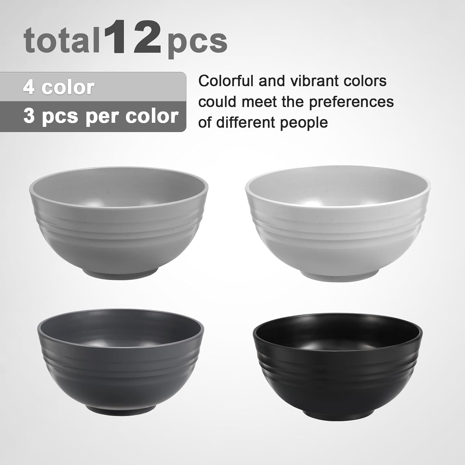 12 Pcs Unbreakable Cereal Bowls Set, 26 Oz Wheat Straw Bowls Set, Microwave & Dishwasher Safe Bowls for Kitchen, Reusable Plastic Bowls for Soup, Salad and Snack, BPA Free, Multicolor