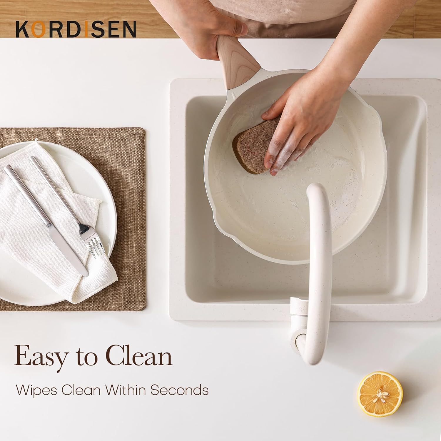 Kordisen Ceramic Nonstick Frying Pan Skillet Set with Lid, 3 Piece Ceramic Pans for Cooking Non Toxic, Healthy Induction Cookware, Stay-Cool Handle, PFOA & PFAS Free (9.5 Inch, 11 Inch, 12.5 Inch)