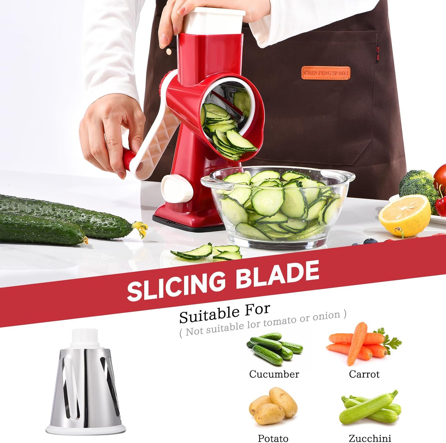 • 【Effortless Food Prep】Simplify grating with quick, easy operation that produces uniform shreds of cheese, fruits, and veggies—perfect for curly fries, salads, and pasta. Its unique feeding port keeps hands safe from blades, saving you time on prep. Cleaning is a breeze under running water; just avoid high-temperature dishwashers.