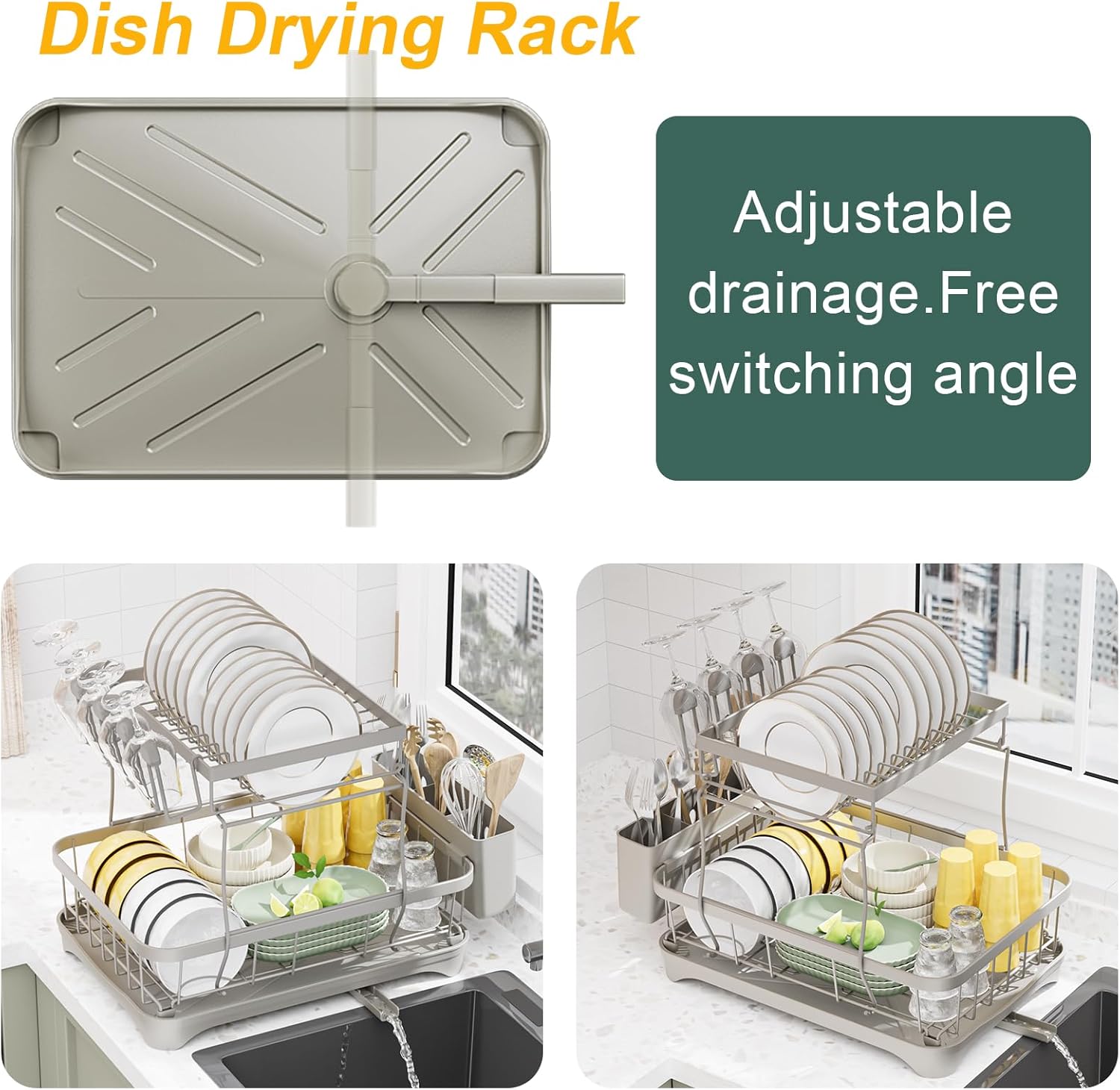 LIYI Dish Drying Rack,Large Dish Rack for Kitchen Counter,2-Tier Dish Racks with draining Tray,Detachable Capacity Dish Drainer Organizer,Grey
