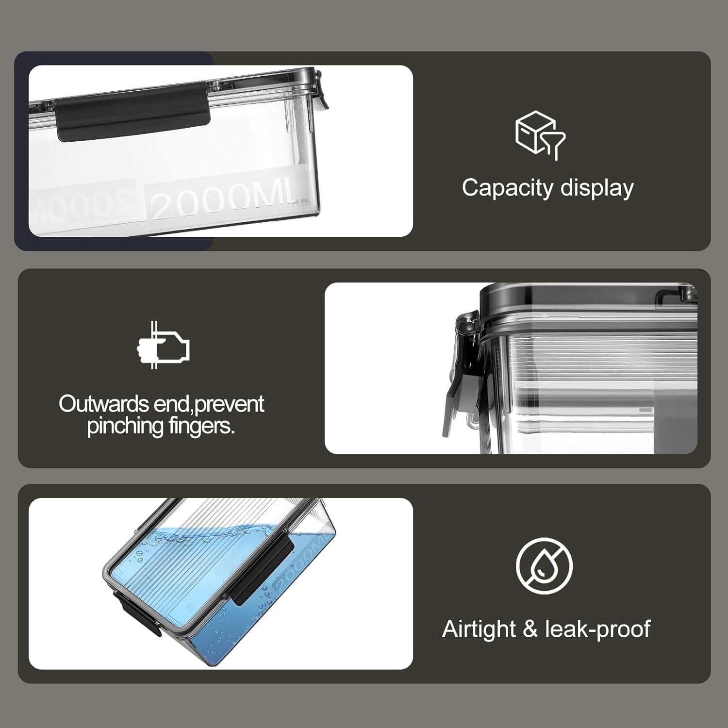 • User-Friendly: The Eclirgan freezer storage container is rectangular and nest,easy to store in cabinets and fridges. The figures on the box show the storage capacity: 500 ml (0.5 QT / 2 Cup / 16 OZ), 1000 ml (1 QT / 4 Cup / 33 OZ), and 2000 ml (2 QT / 8.4 Cup / 67 OZ), meeting different needs of use. The end of the snap lock is spread outward, easy to open.