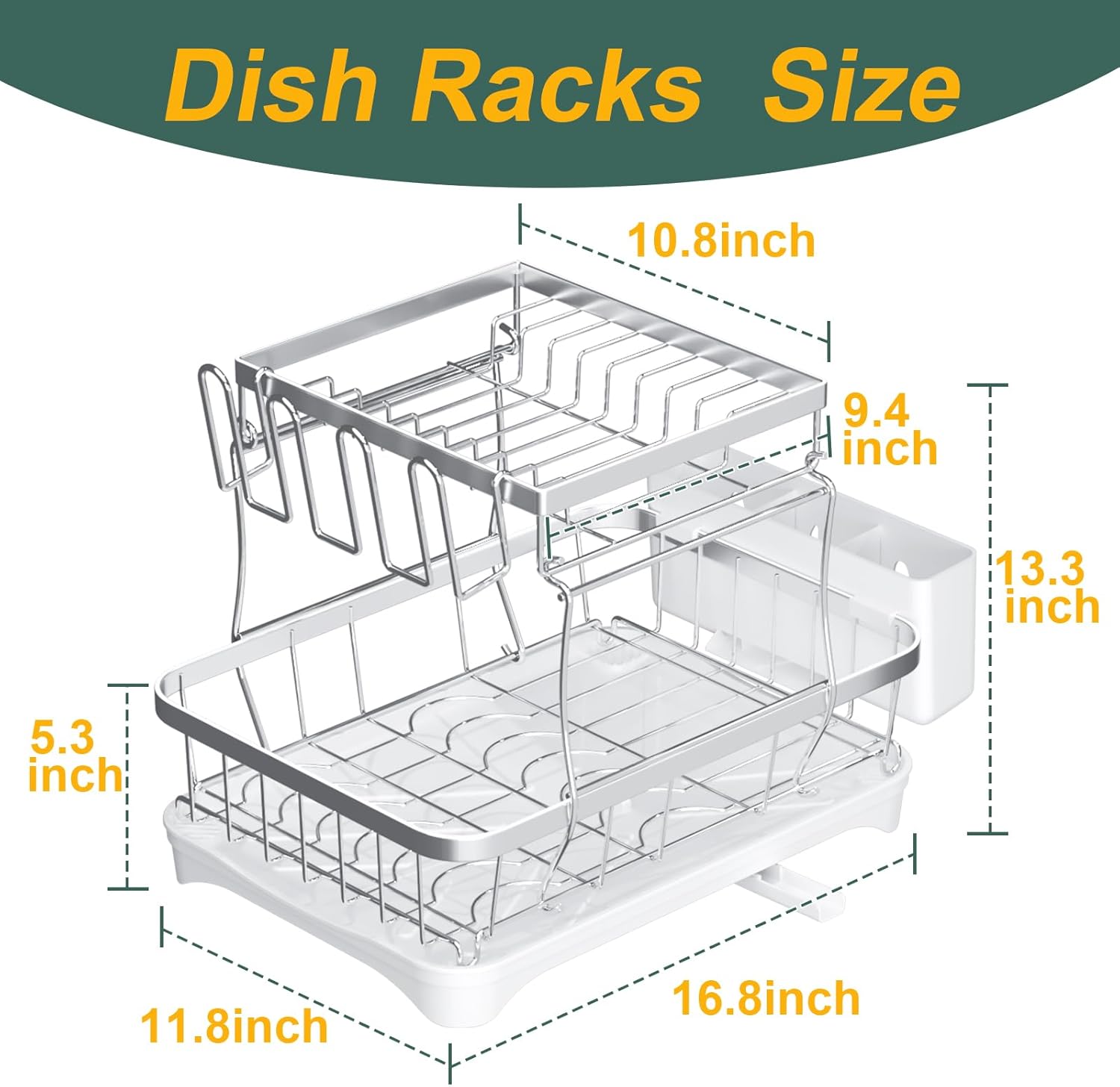 • Compact design,large capacity:2-tier dish drying rack, measuring 16.5 inches × 12 inches × 13.3 inches,providing 42 litres of effective storage space in a limited space.We offer 24-hour after-sales service.You can contact us at any time, and our team will be happy to serve you
