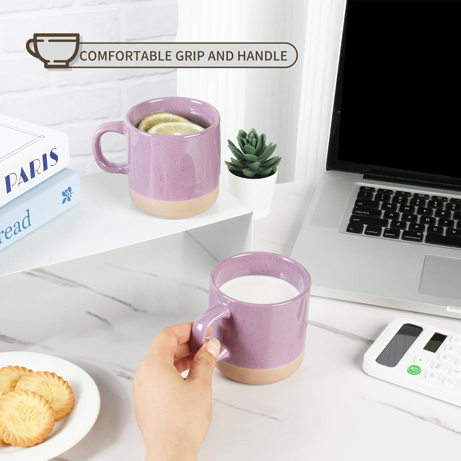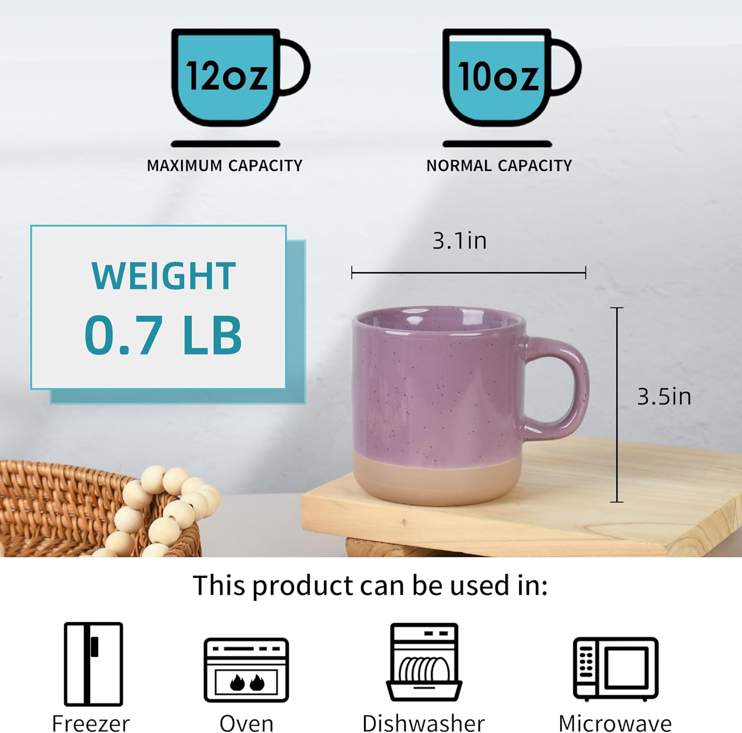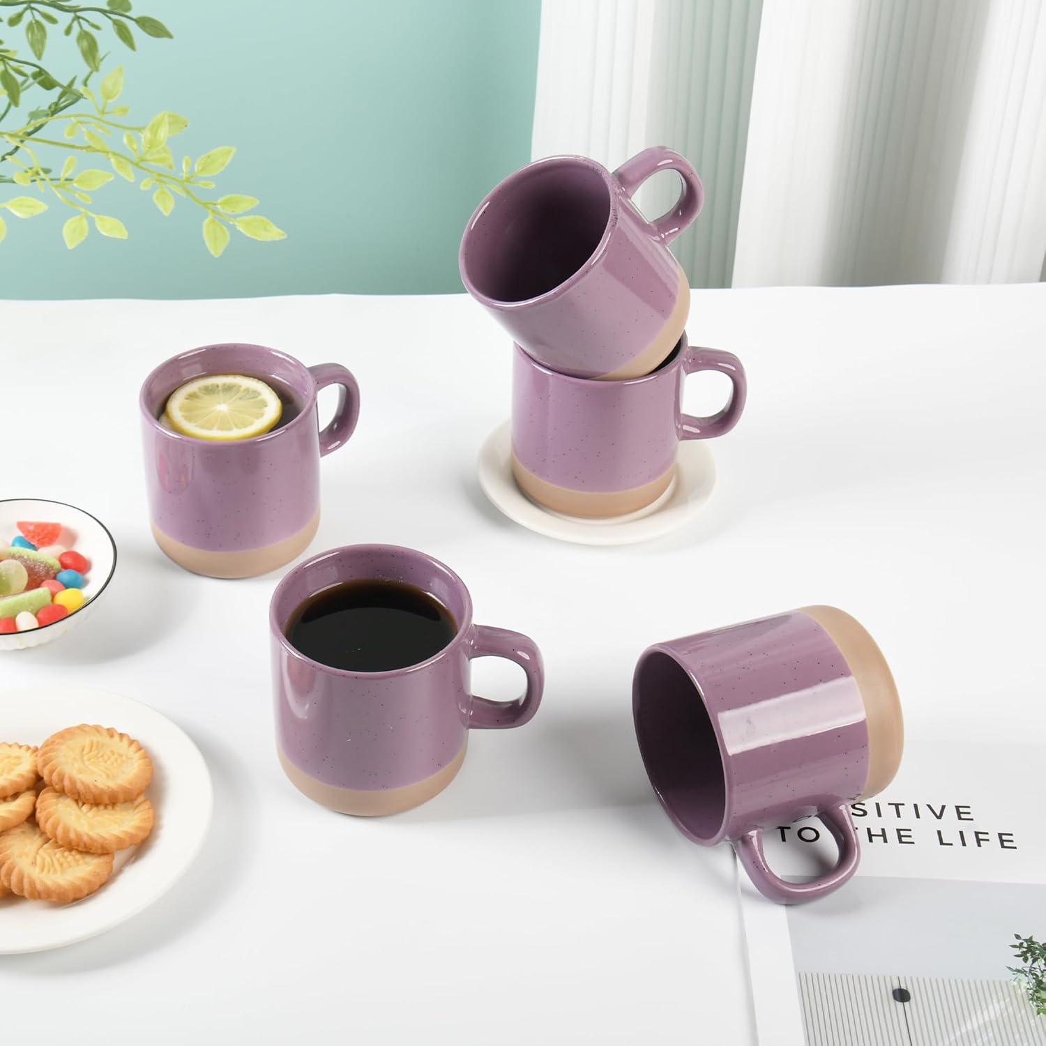 12 oz Coffee Mug Set for 6, Tea Cups with Handle for Coffee, Tea, Cocoa, Milk (Purple)