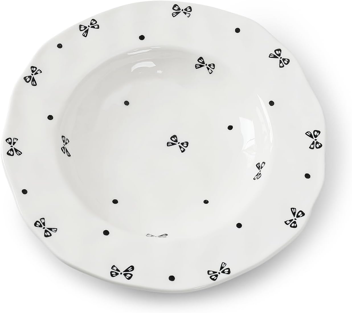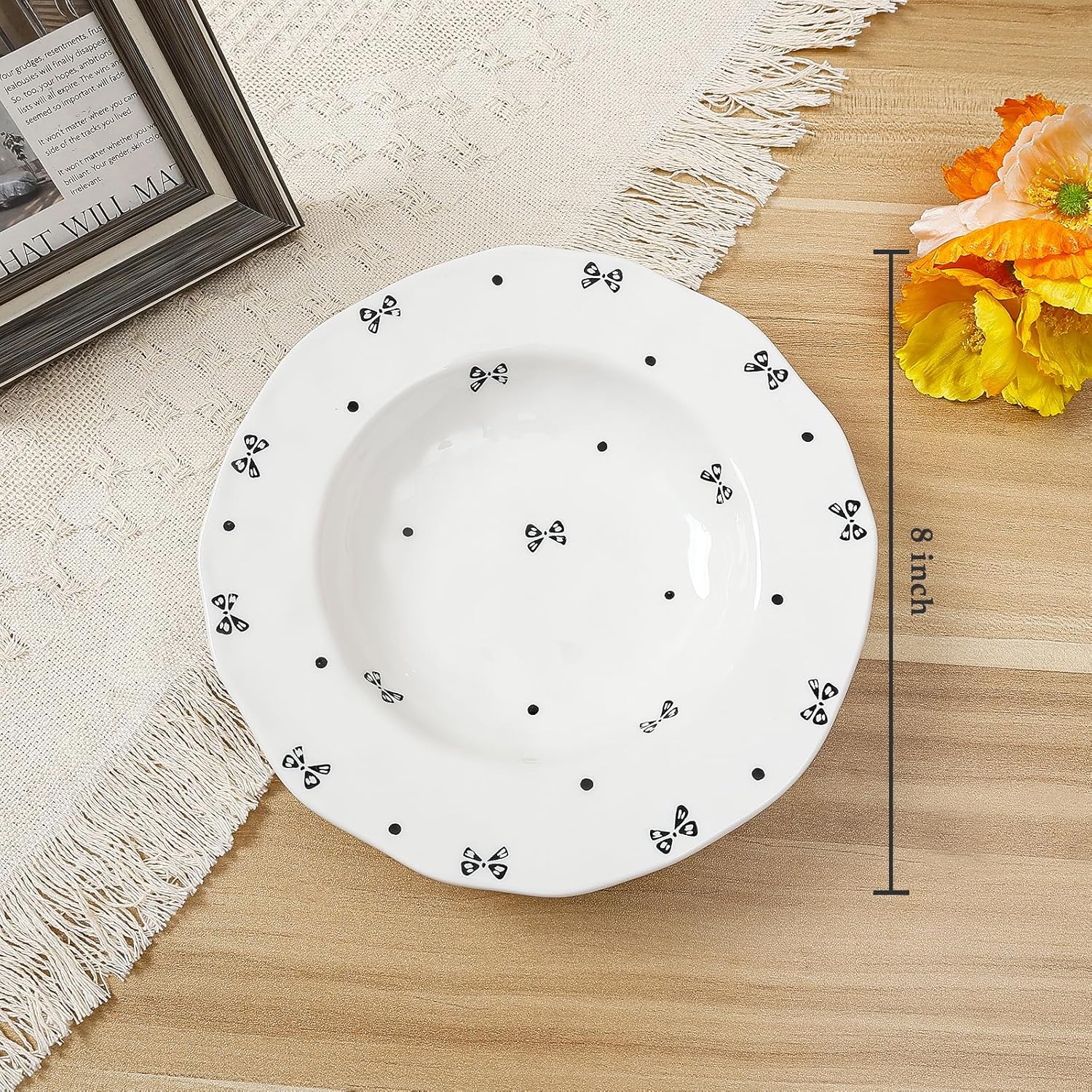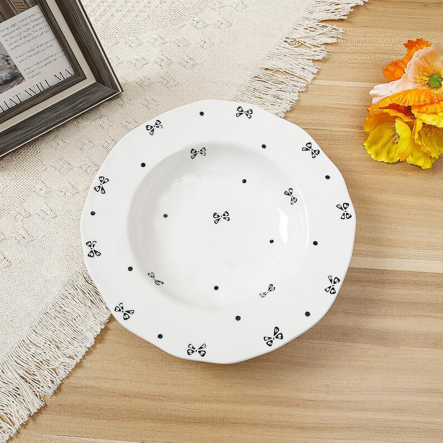 Koythin Ceramic Straw Hat Ramen Bowl Set, Pasta Bowls, Salad Serving Bowl for Noodle, Dinner, Salad, Microwave Dishwasher Safe (Black Bow)