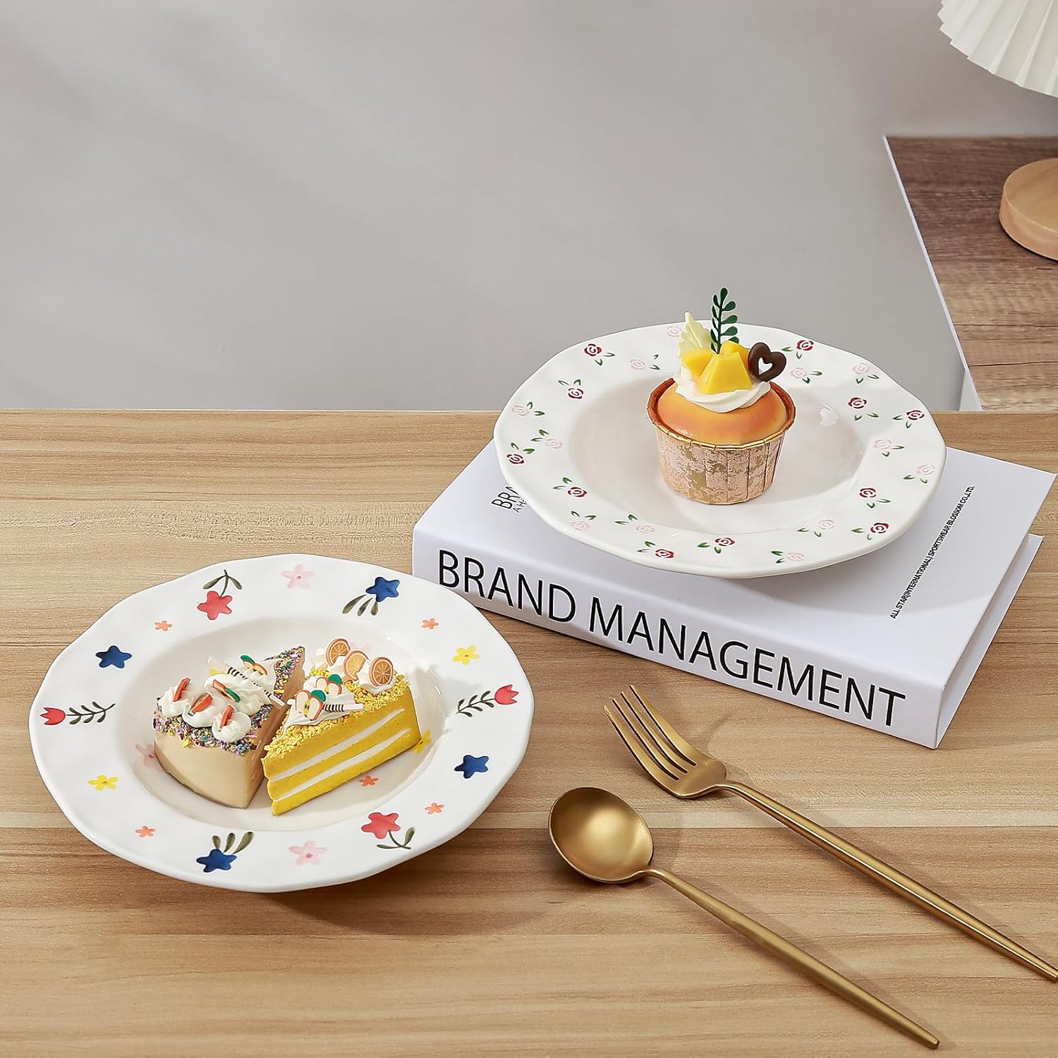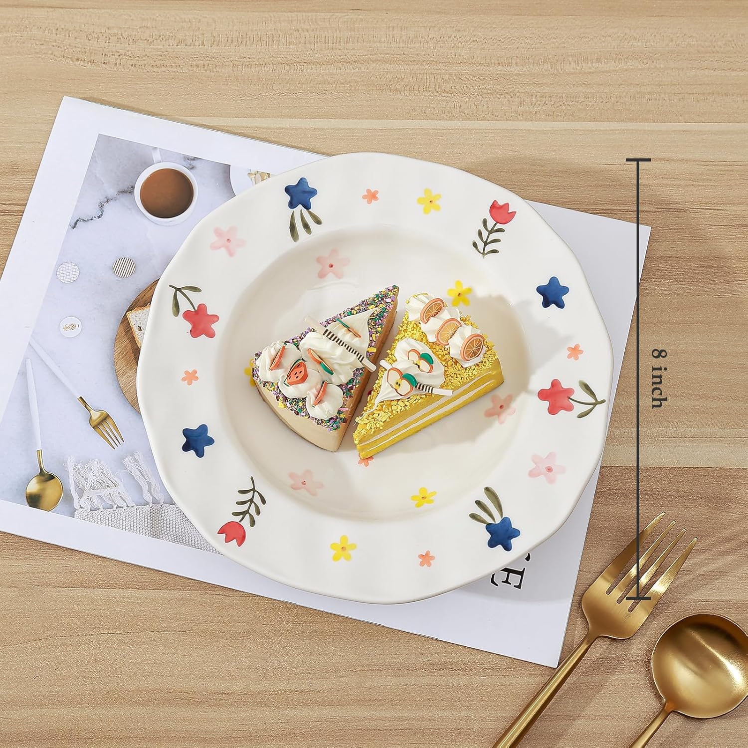 Koythin Ceramic Straw Hat Ramen Bowl Set, Pasta Bowls, Salad Serving Bowl for Noodle, Dinner, Salad, Microwave Dishwasher Safe (Large Floral Fragments)