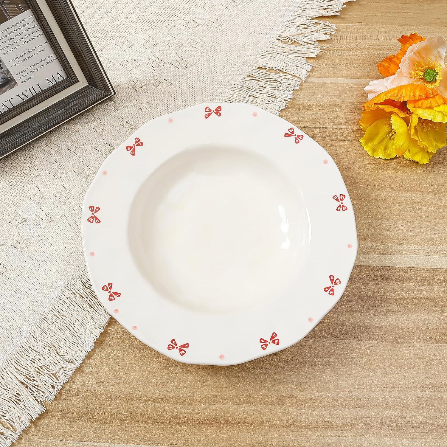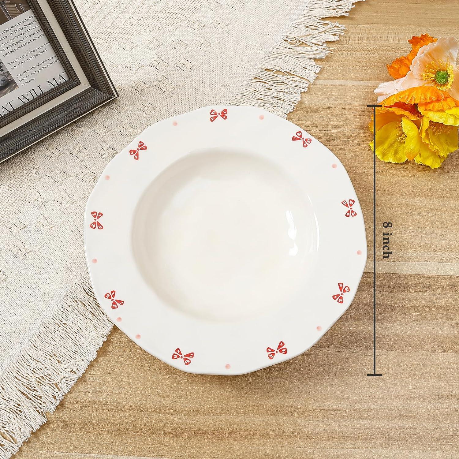 Koythin Ceramic Straw Hat Ramen Bowl Set, Pasta Bowls, Salad Serving Bowl for Noodle, Dinner, Salad, Microwave Dishwasher Safe (Pink Bow)