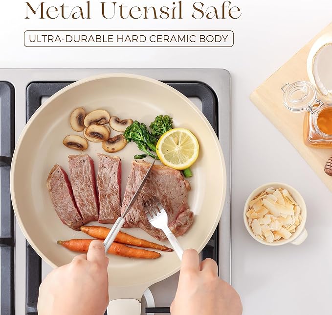 • Longer Lifespan (Metal Utensil Safe): Built for long-term use, the StickProofX ceramic coating withstands metal utensils and keeps its nonstick performance intact—even after 2 years of daily cooking