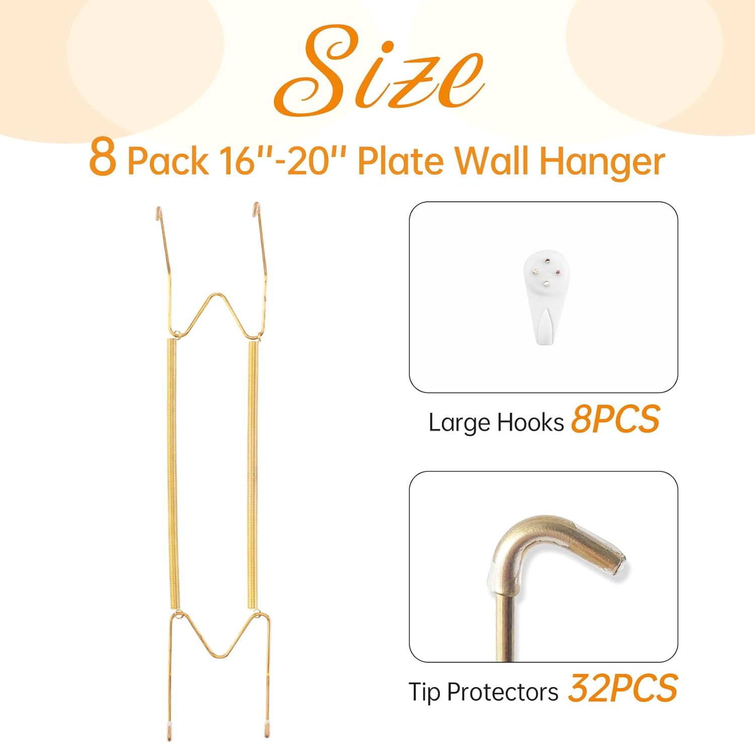 • Package Inclusion: Our package includes 8 wall plate hangers, 8 wall hooks, 32 rubber tip protectors, 1 instruction, fit for holding 16-20 inch round or square plates. You can create a variety of arrangements to decorate your plates to fully meet your hanging and display requirements.