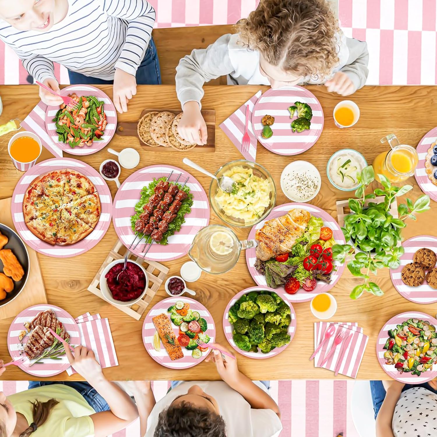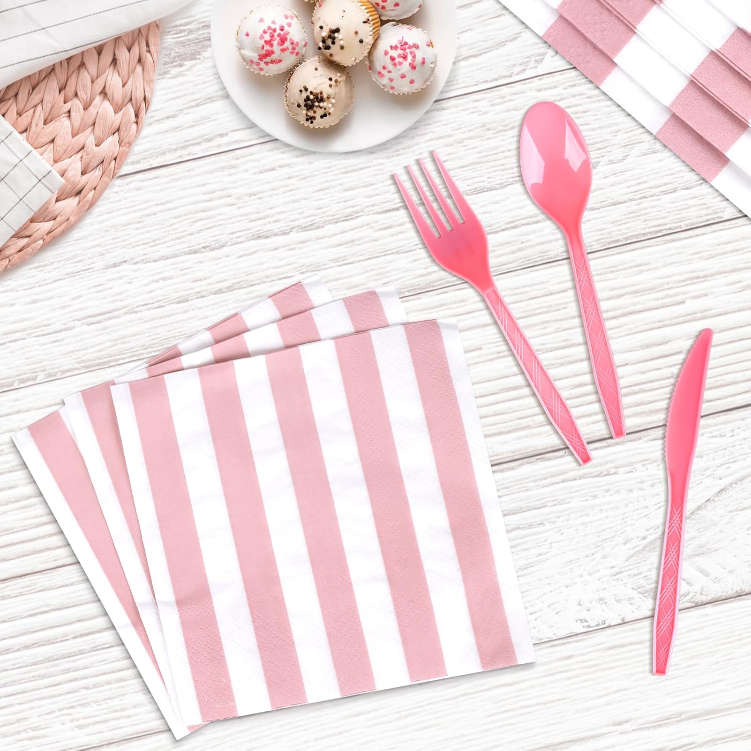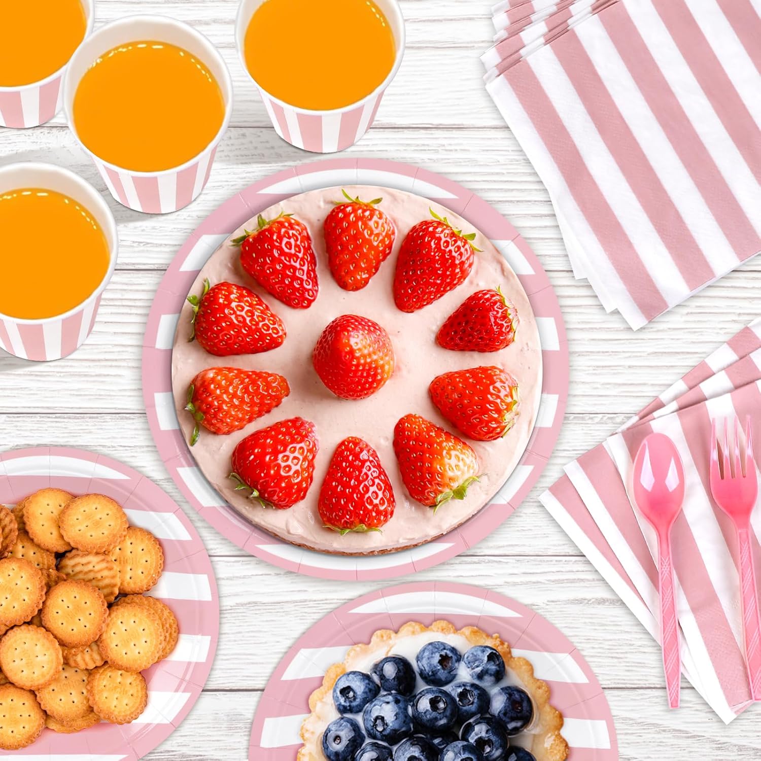 • Perfect Pink and White Party Decorations - This pink and white striped party supplies pack is designed to pink striped elements creates design. These dinnerware can be paired with any themed party, and it will be the highlight of tabletop decor, loved by visitors. Perfect choice for a pink and white themed party.