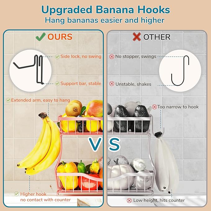 • Banana Hangers: Includes two detachable banana hooks for higher, better hanging
