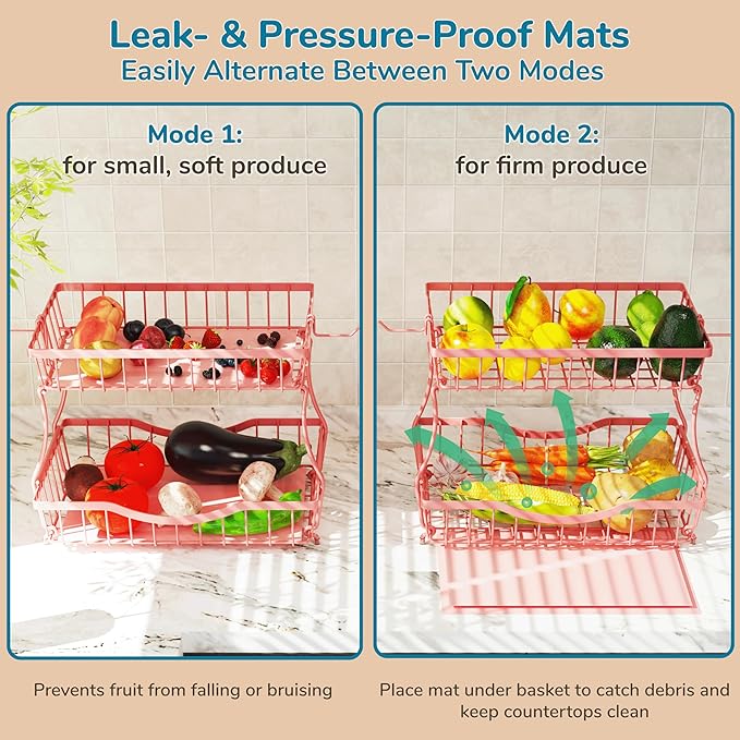 • Removable Mats: Easily alternate between the leak-proof mats or open ventilation, perfect for fruit and vegetable organizer