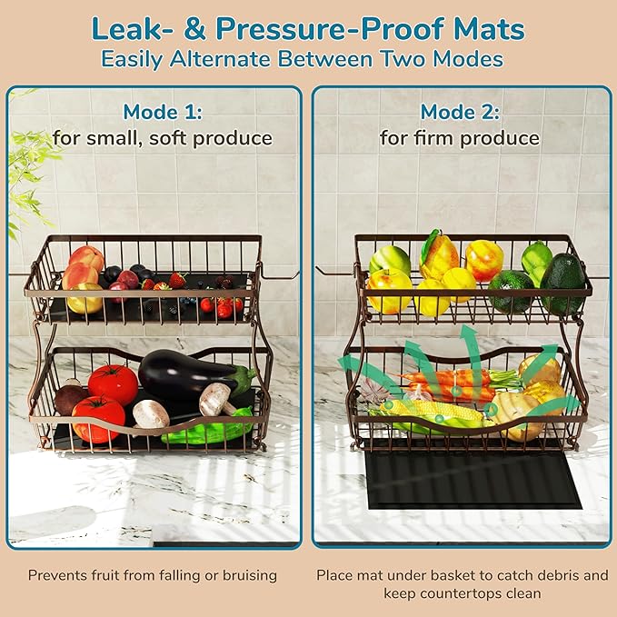 • Removable Mats: Easily alternate between the leak-proof mats or open ventilation, perfect for fruit and vegetable organizer