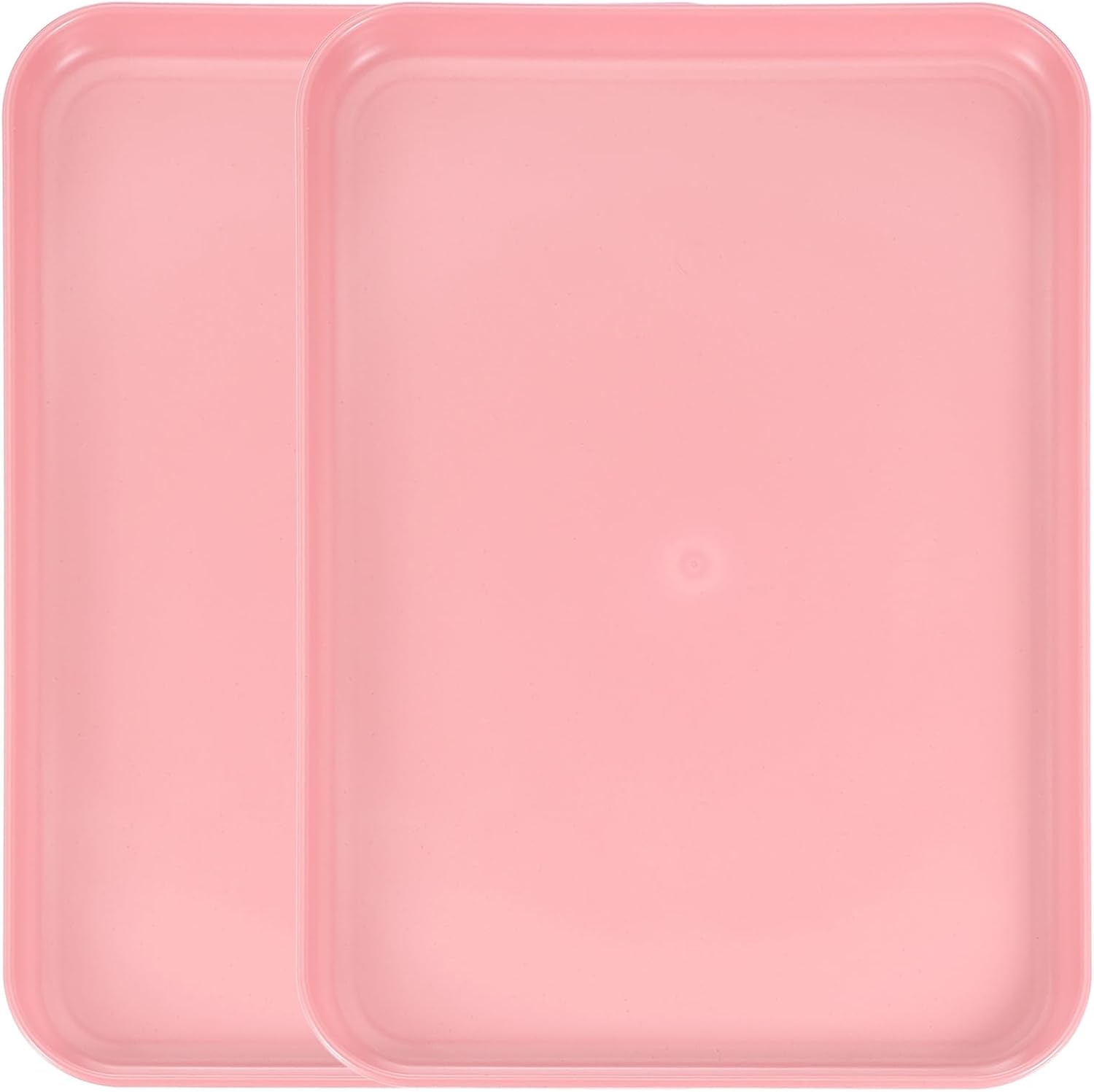 uxcell 2Pcs Plastic Serving Trays, 12.2 x 8.7 Inch Rectangle Food Trays Serving Cafeteria for Kitchen Restaurant Coffee Fruit Burger Lunch Dessert, Pink