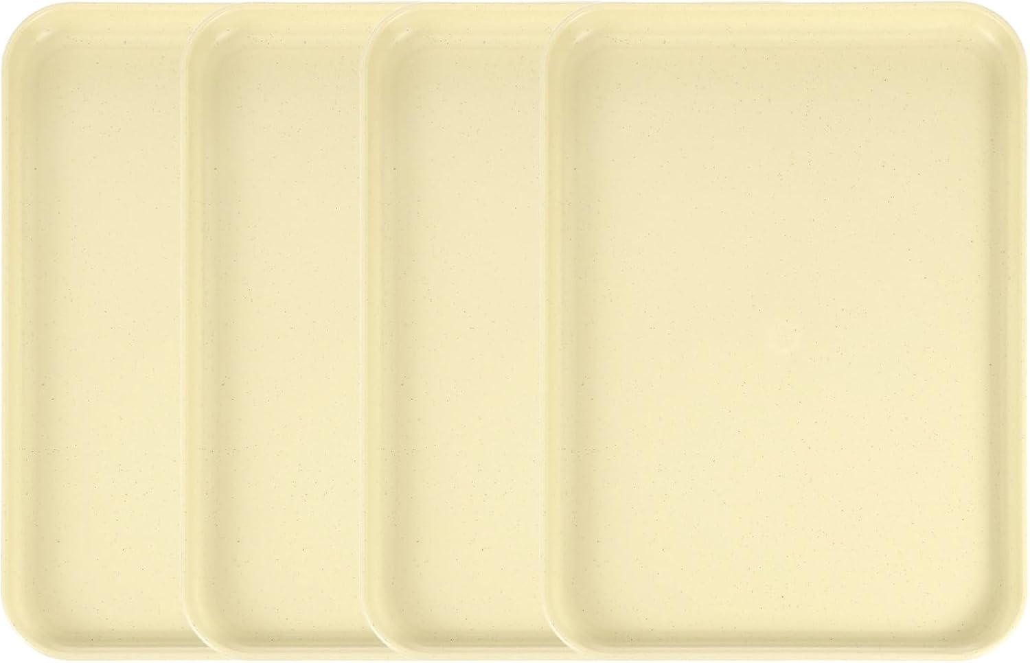 uxcell 4Pcs Plastic Serving Trays, 12.2 x 8.7 Inch Rectangle Food Trays Serving Cafeteria for Kitchen Restaurant Coffee Fruit Burger Lunch Dessert, Light Yellow