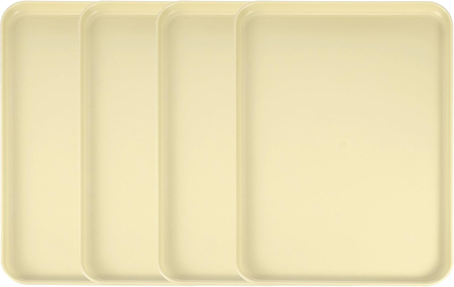 uxcell 4Pcs Plastic Serving Trays, 15 x 10.6 Inch Rectangle Food Trays Serving Cafeteria for Kitchen Restaurant Coffee Fruit Burger Lunch Dessert, Light Yellow