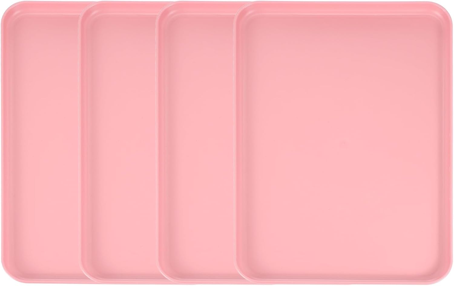 uxcell 4Pcs Plastic Serving Trays, 15 x 10.6 Inch Rectangle Food Trays Serving Cafeteria for Kitchen Restaurant Coffee Fruit Burger Lunch Dessert, Pink
