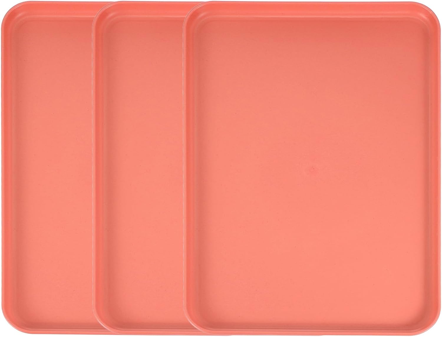 uxcell 3Pcs Plastic Serving Trays, 15 x 10.6 Inch Rectangle Food Trays Serving Cafeteria for Kitchen Restaurant Coffee Fruit Burger Lunch Dessert, Orange
