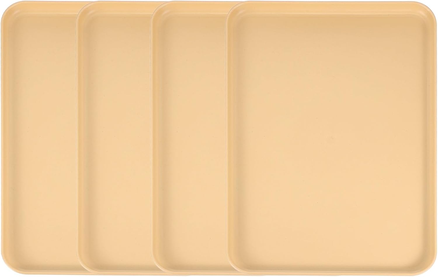 uxcell 4Pcs Plastic Serving Trays, 15 x 10.6 Inch Rectangle Food Trays Serving Cafeteria for Kitchen Restaurant Coffee Fruit Burger Lunch Dessert, Yellow