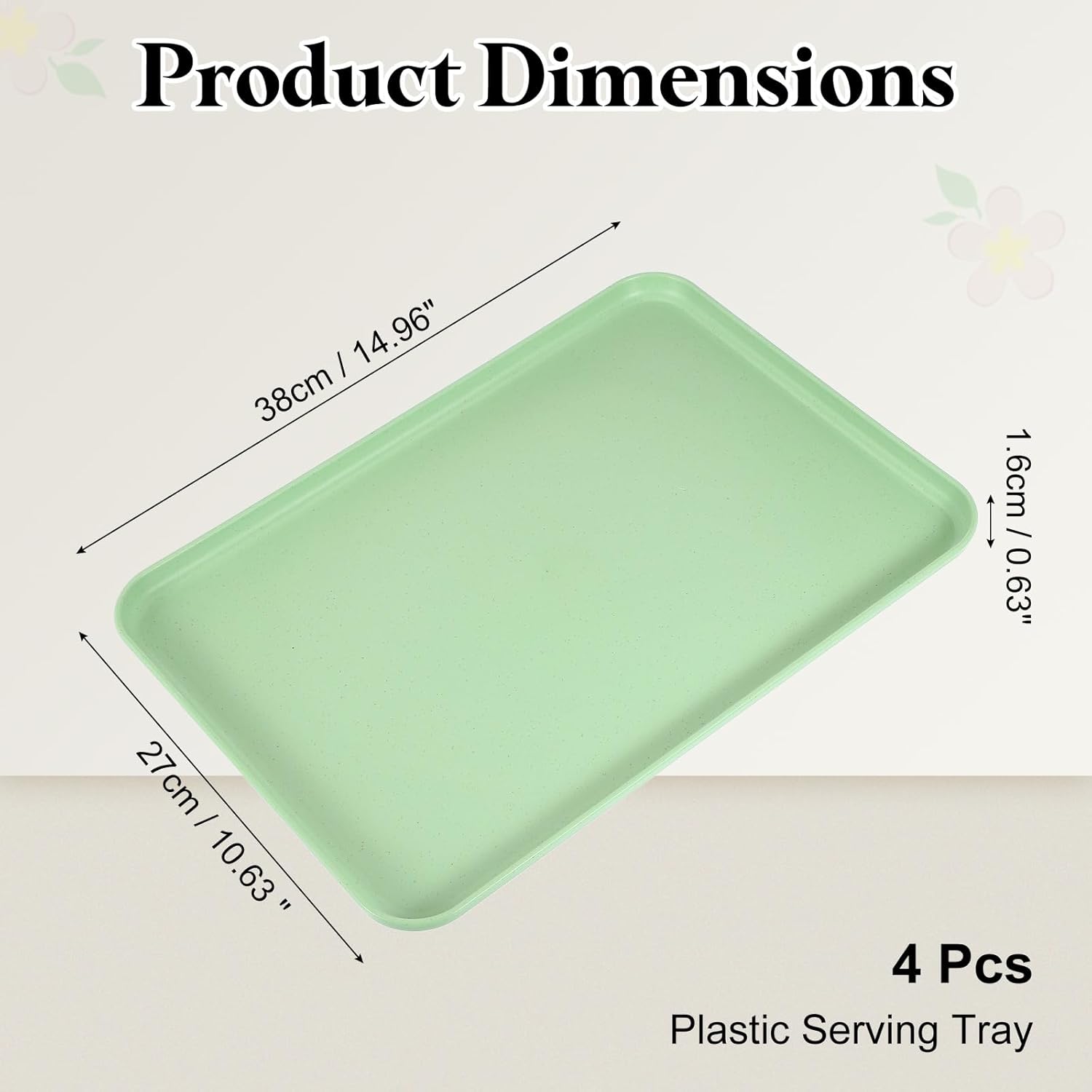 uxcell 4Pcs Plastic Serving Trays, 15 x 10.6 Inch Rectangle Food Trays Serving Cafeteria for Kitchen Restaurant Coffee Fruit Burger Lunch Dessert, Matcha