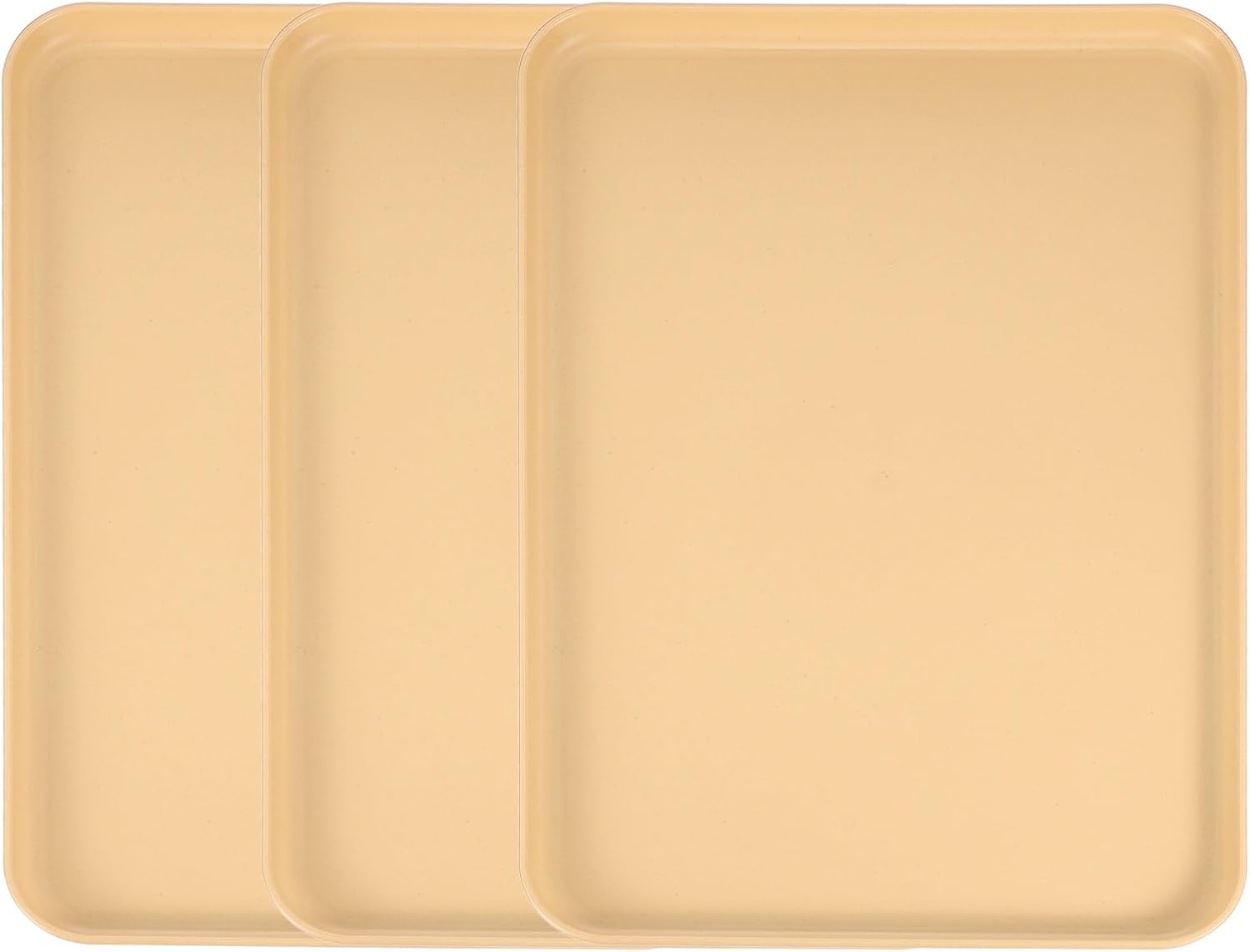 uxcell 3Pcs Plastic Serving Trays, 15 x 10.6 Inch Rectangle Food Trays Serving Cafeteria for Kitchen Restaurant Coffee Fruit Burger Lunch Dessert, Yellow