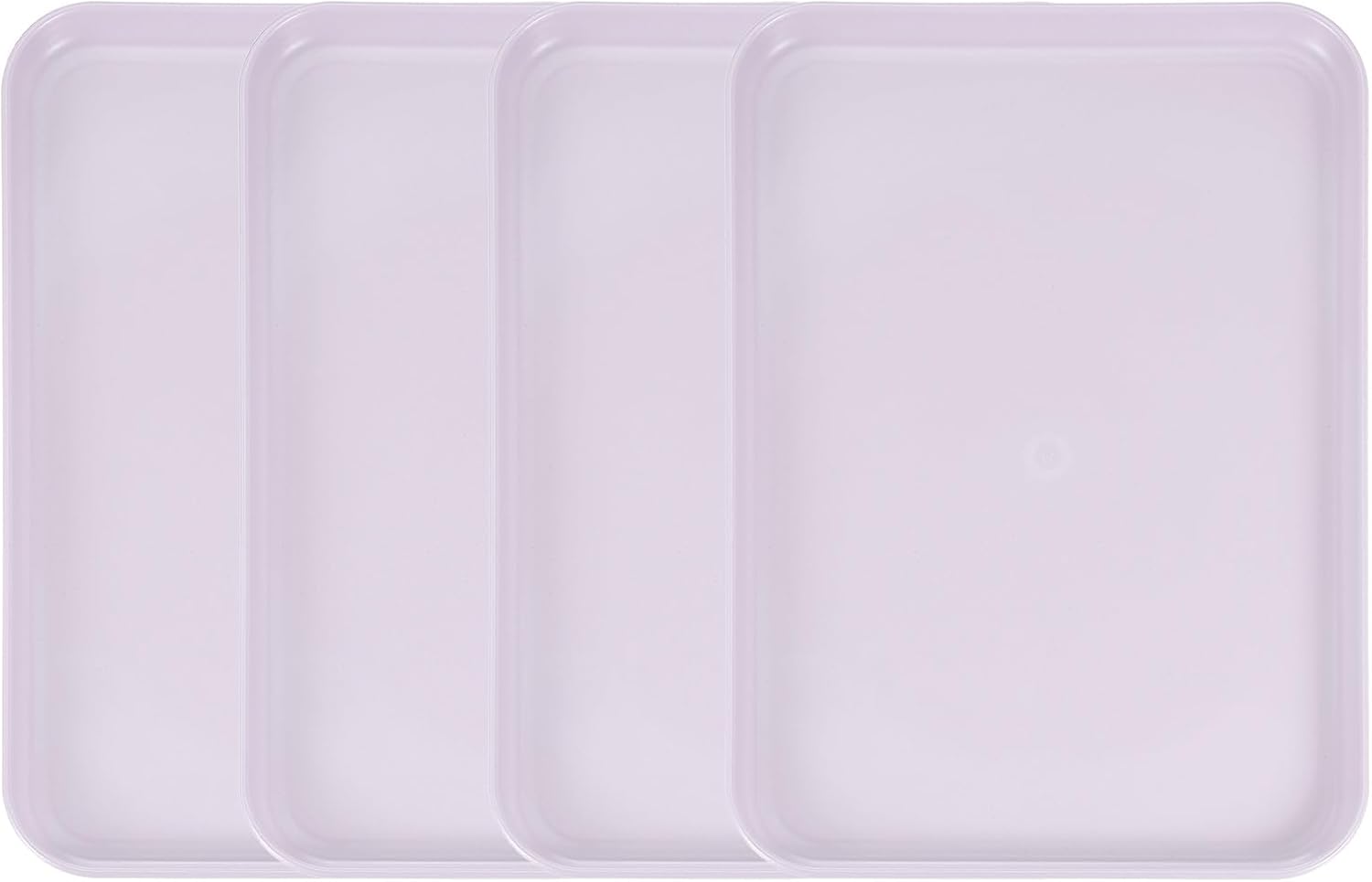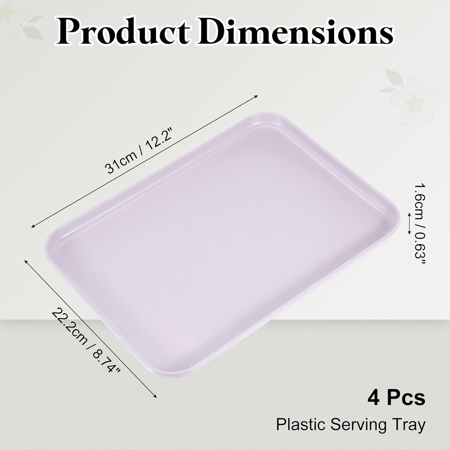 uxcell 4Pcs Plastic Serving Trays, 12.2 x 8.7 Inch Rectangle Food Trays Serving Cafeteria for Kitchen Restaurant Coffee Fruit Burger Lunch Dessert, Light Purple