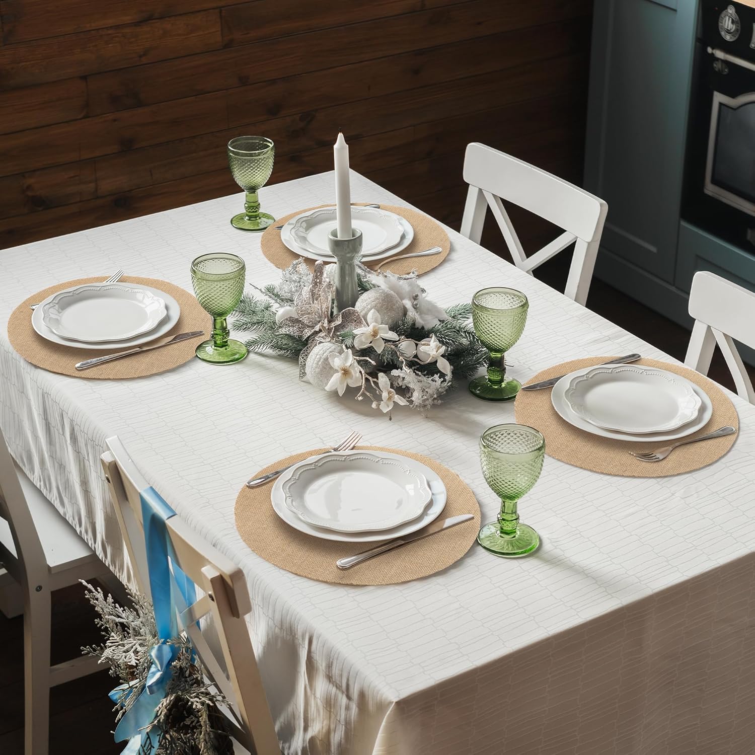 • Natural Jute Fibers Placemats: crafted from premium jute, these mats blend durability with a soft, textured feel; the rustic brown tone of these burlap circle rustic table decorations adds a warm, earthy feel, appealing to those who enjoy natural, cozy decor atmospheres that enhance table aesthetics