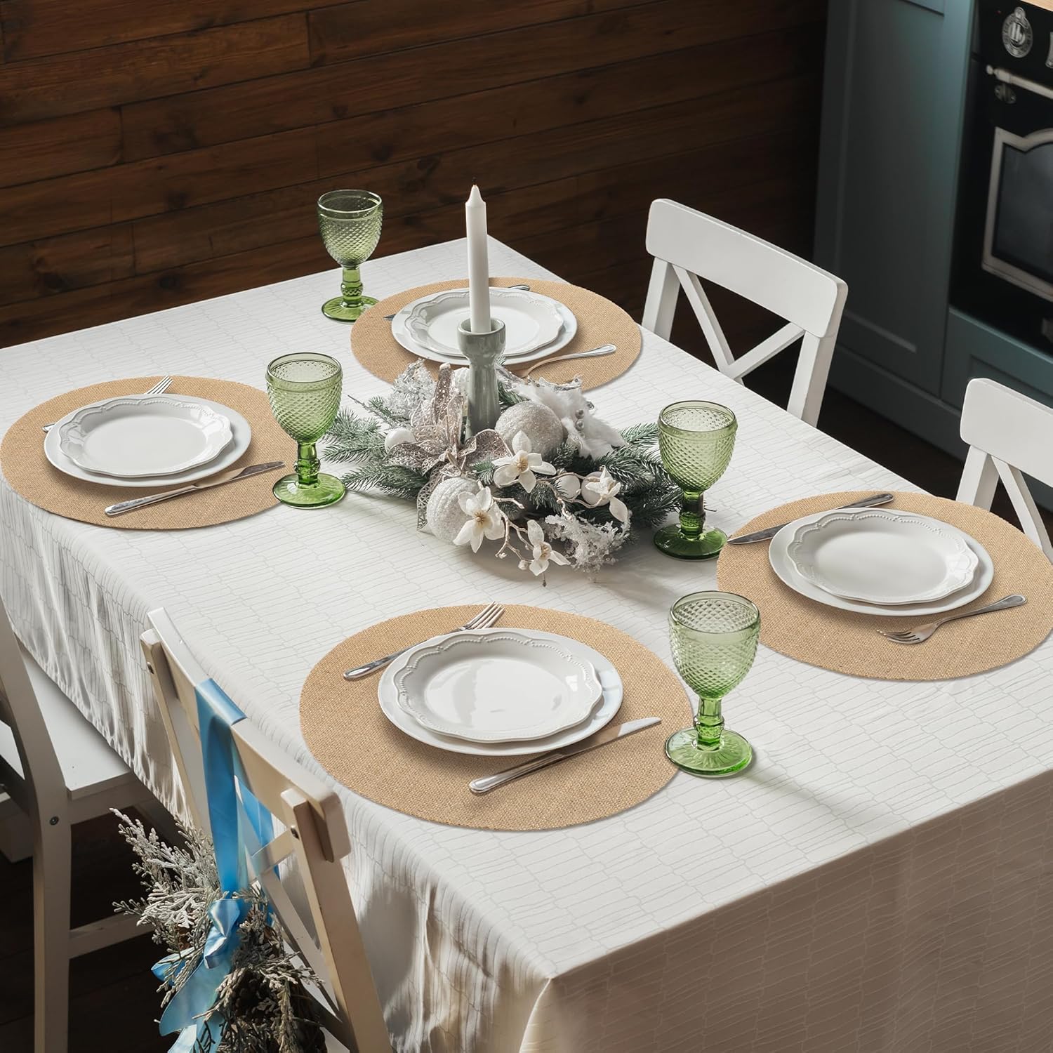 • 15-Inch Diameter Mats: round burlap placemats with a diameter of approx. 15 inches (38 cm) offer ample coverage for protecting table surfaces from spills and scratches; these reusable brown table mats accommodate various items, including cups, plates, decorative vases, and potted plants, addressing diverse dining and decor needs seamlessly