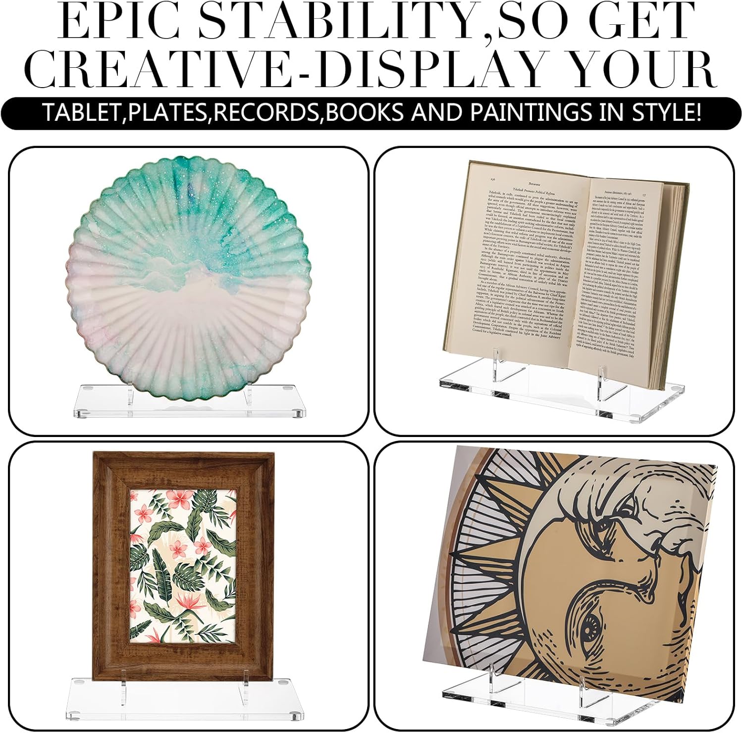 • Stable Display: our acrylic easel stand is made from thick acrylic that can firmly secure your decor without bending backwards or falling; Consisting of 3 transparent acrylic plates, it only needs to be slotted into place for use; The stand includes a slot to secure your items and prevent them from slipping; 4 nonslip pads are included to provide stability and to keep your stand securely placed on the desktop