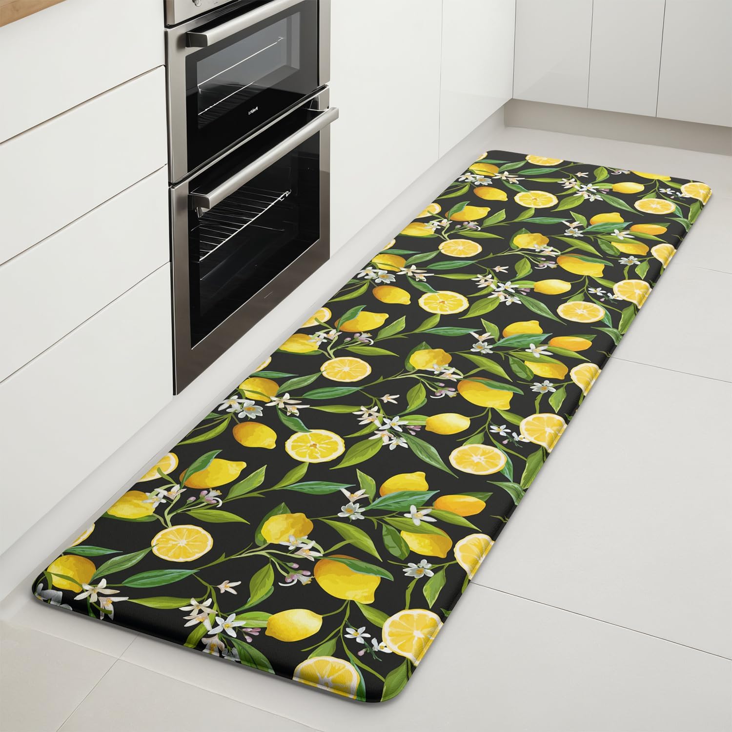 Lemon Kitchen Mats for Floor - Anti Fatigue Mats for Kitchen Floor, Cushioned Non-Skid Washable Memory Foam Rug for Office, Sink, Laundry (17.3"×59"×0.47") Black