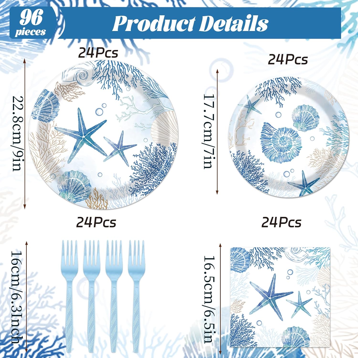 • Versatile for Various Occasions: Ideal for beach-themed parties, but also suitable for birthdays, baby showers, or any event that appreciates a coastal vibe, these tableware sets are a versatile choice