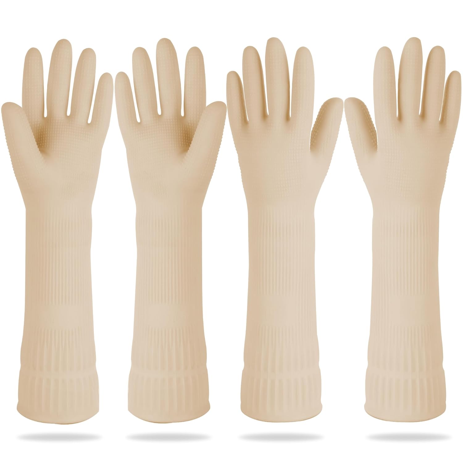 Mamison 2 Pairs Reusable Waterproof Household Dishwashing Cleaning Rubber Gloves, Non-Slip Kitchen Glove (Ivory, Large (Pack of 2))