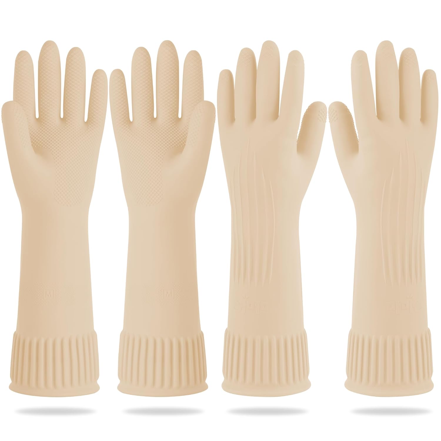 Mamison 2 Pairs Reusable Waterproof Household Dishwashing Cleaning Rubber Gloves, Non-Slip Kitchen Glove (Ivory, Medium (Pack of 2))