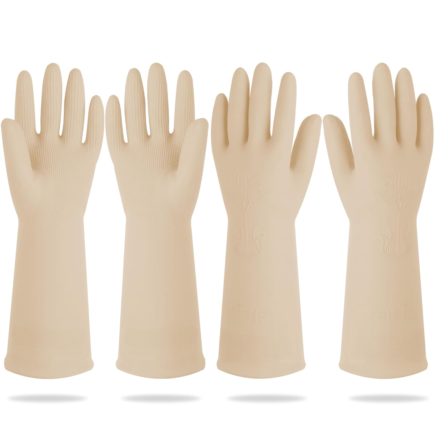 Mamison 2 Pairs Reusable Waterproof Household Dishwashing Cleaning Rubber Gloves, Non-Slip Kitchen Glove (Ivory, Small (Pack of 2))