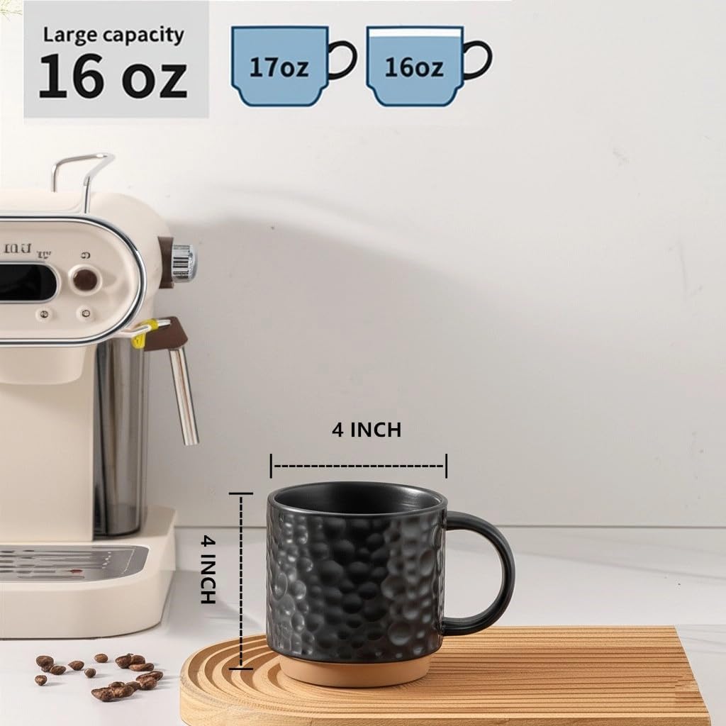 Nihow 16OZ Stackable Coffee Mug Set, Large Ceramic Coffee Mug Set of 4,Coffee Cup Set for Cappuccino/Latte/Cocoa,Dishwasher & Microwave Safe, Matte Black