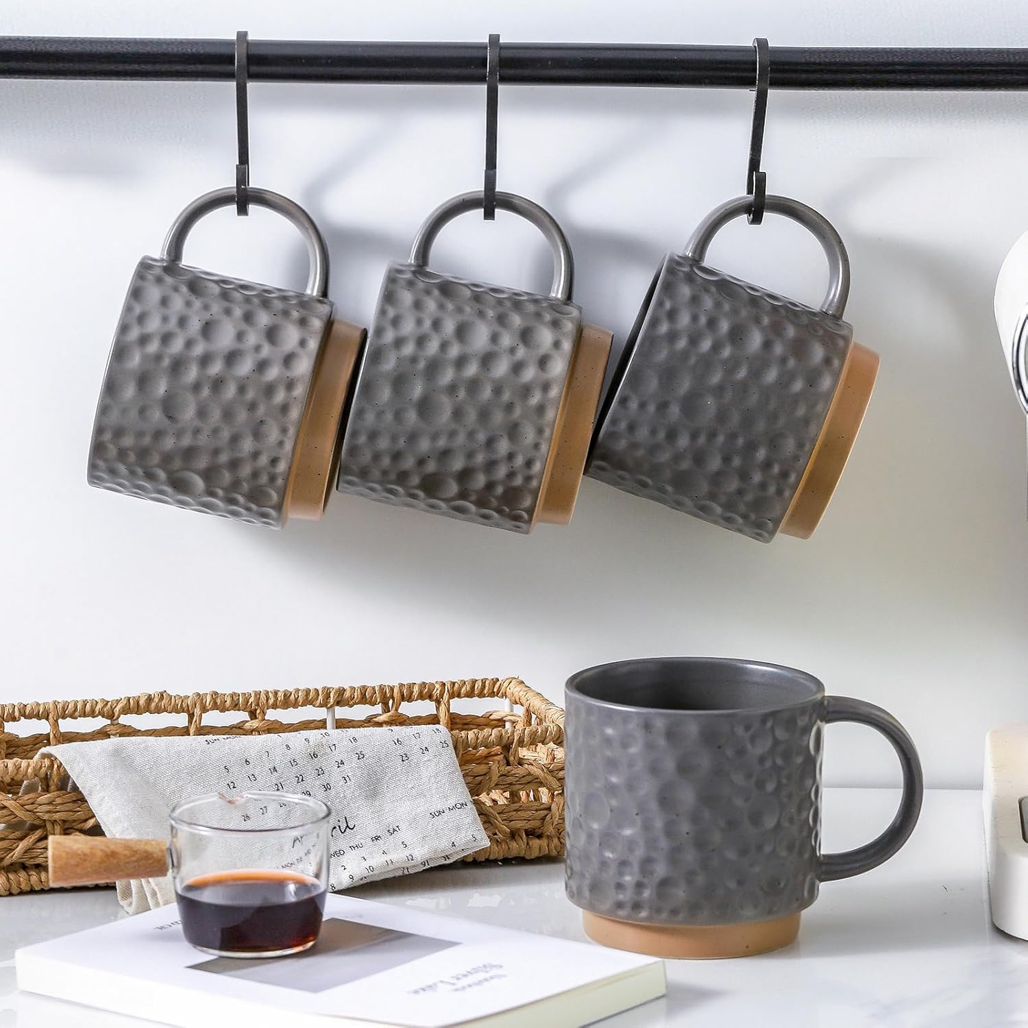 • 【DESIGN】The stackable feature allows for convenient storage and organization in your kitchen cabinet or pantry, saving space and keeping your mugs easily accessible.a beautiful embossed texture design,a large handle that fits the feel,the smooth rim ensures a comfortable drinking experience.
