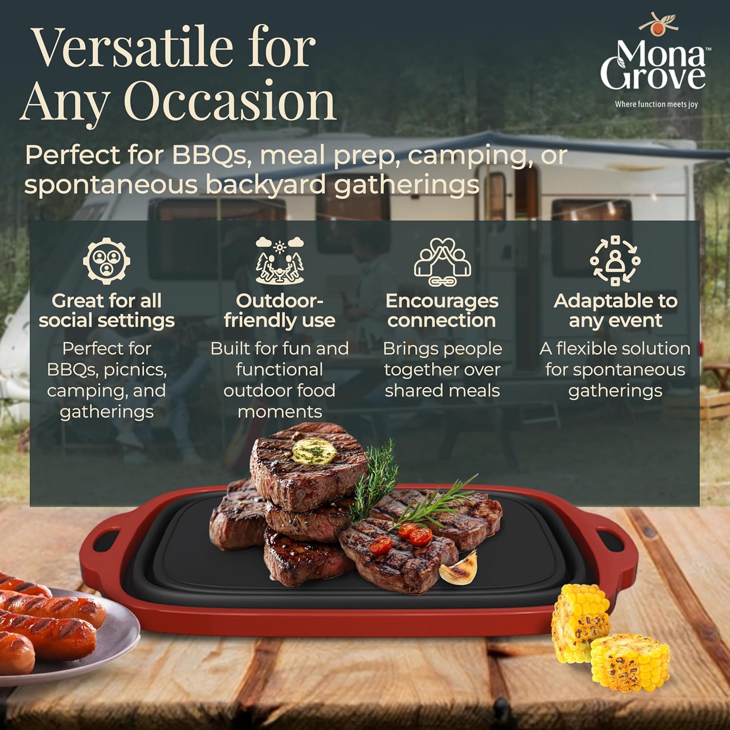 • Versatile for Any Occasion – From weeknight dinners to campsite cookouts, this BPA-free tub adapts to every moment. Perfect for BBQs, meal prep, camping, or spontaneous backyard gatherings.