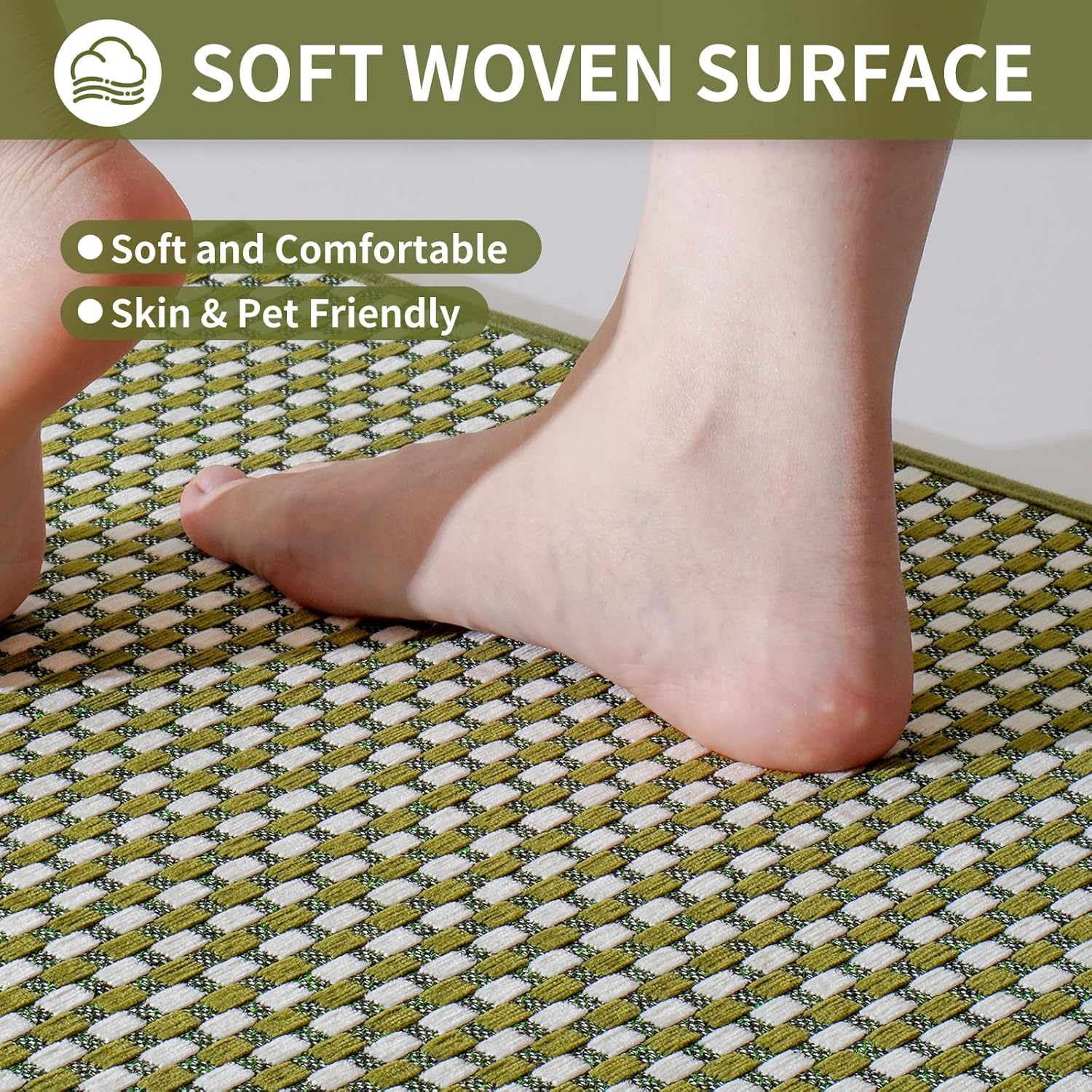 Large Kitchen Runner Rugs Long Kitchen Mat Non Slip Washable, Super Absorbent Soft Chenille Braided Kitchen Mats for Floor, Rubber Backing Kitchen Sink Standing Mat, Easy Clean, Green 36"x71"