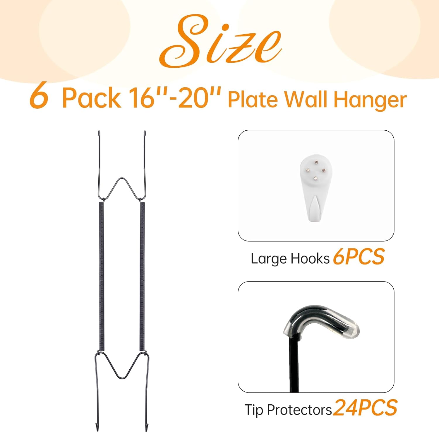• Package Inclusion: Our package includes 6 wall plate hangers, 6 wall hooks, 24 rubber tip protectors, 1 instruction, fit for holding 16-20 inch round or square plates. You can create a variety of arrangements to decorate your plates to fully meet your hanging and display requirements.