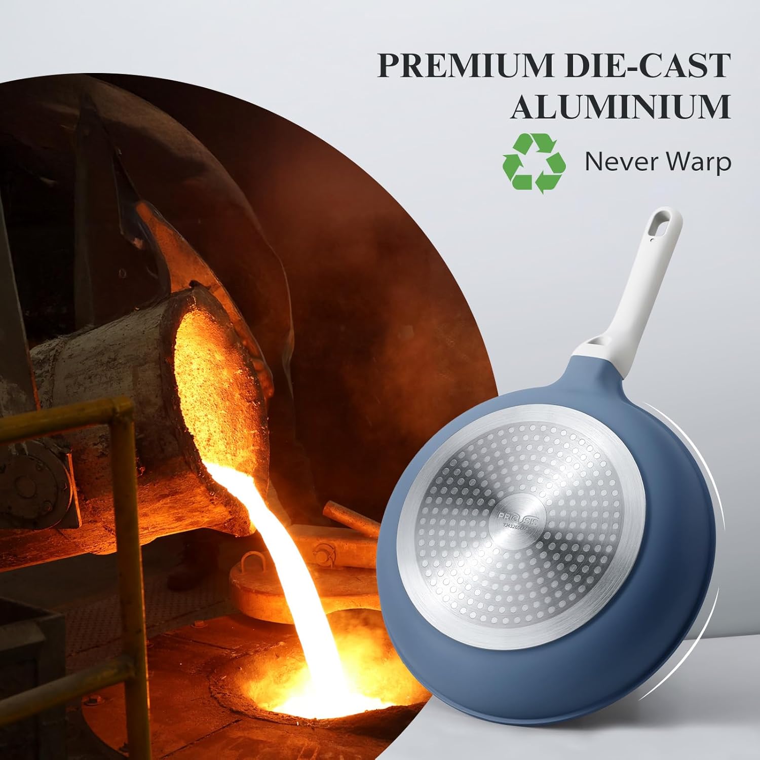 PRICUSIS Nonstick Ceramic Frying Pan, 8/10/12 Inch Non Toxic Skillet, Egg & Omelet & Chef's Pan, Induction Compatible & Oven Safe, Dishwasher Safe,PTFE PFAS & PFOA Free (8 Inch, Blue Gray)